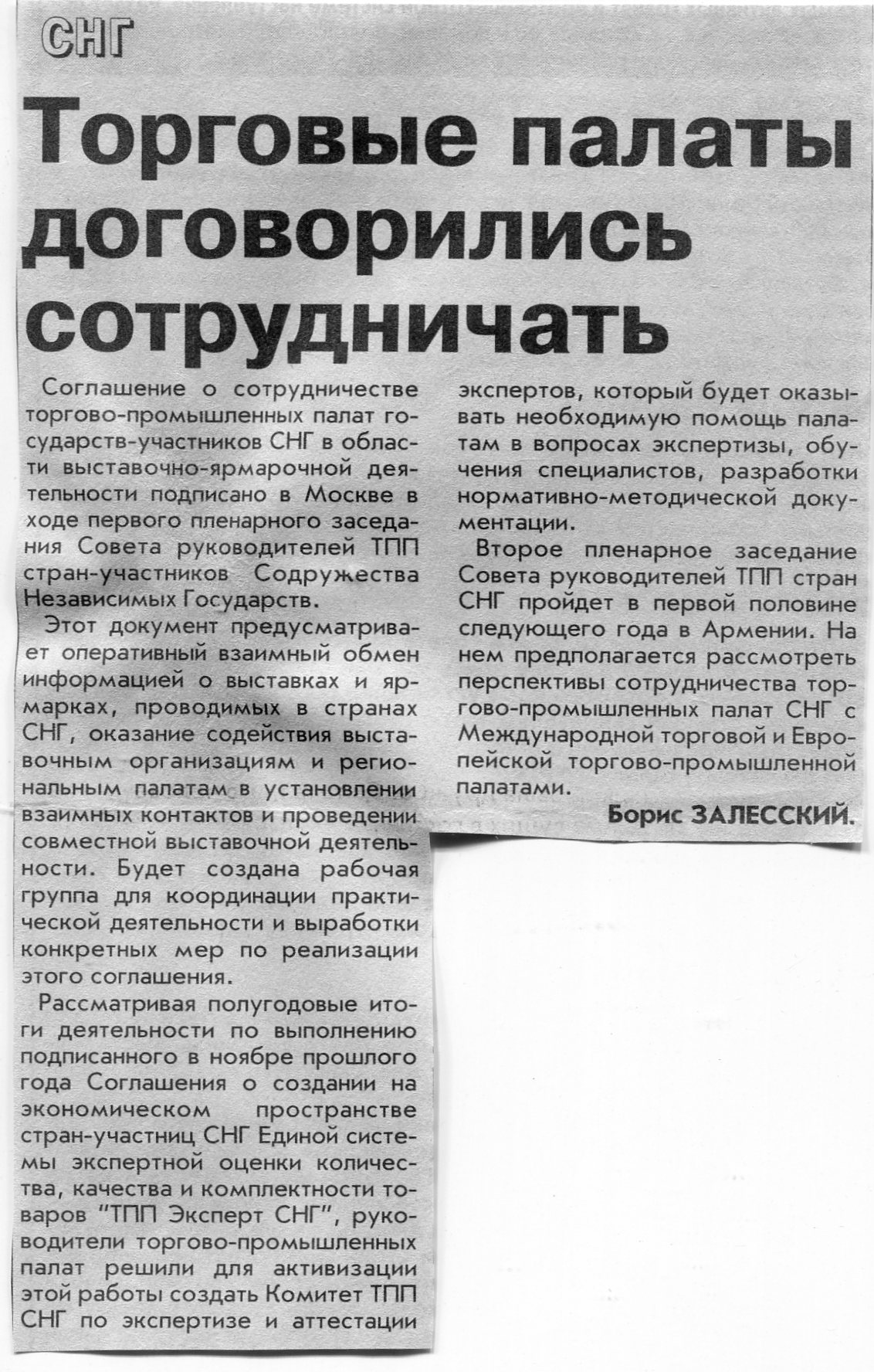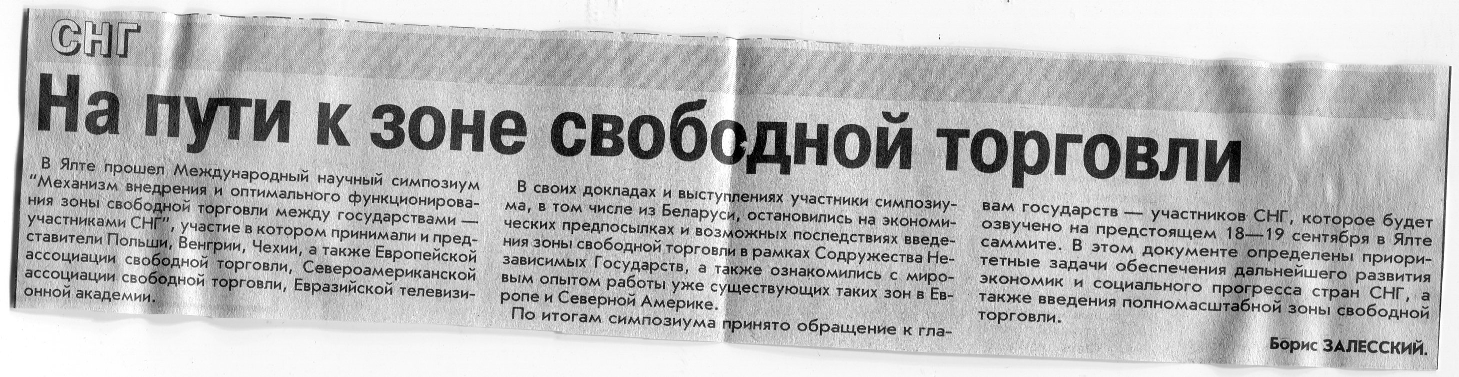 Залесский, Б. "СНГ: интеграция-96" / Б. Залесский // Вечерний Минск. - 1996. - 10 дек.