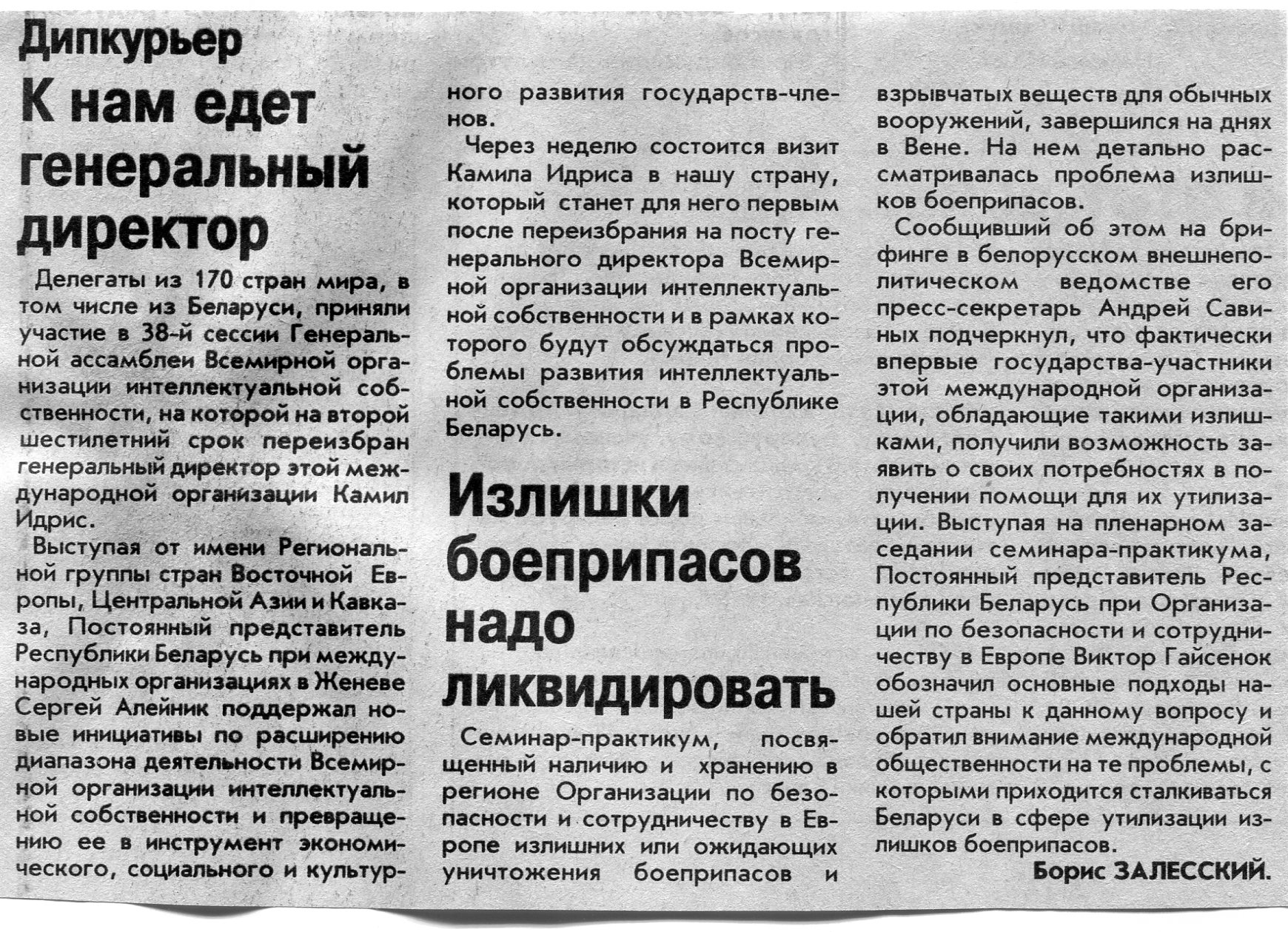 Залесский, Б. Чтобы избавиться от излишков оружия / Б. Залесский // Вечерний Минск. - 2003. - 30 окт.