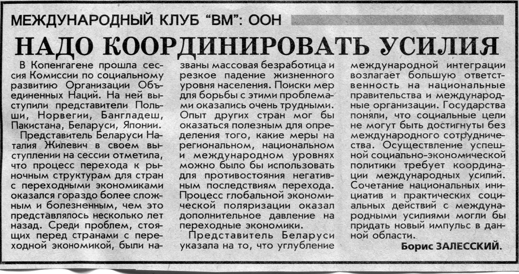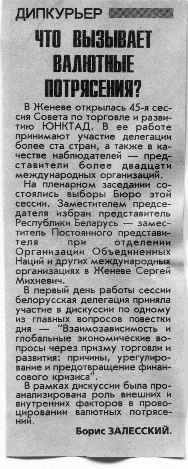 Залесский, Б. Вице-председатель - представитель Беларуси / Б. Залесский // Вечерний Минск. - 1998. - 14 июл.
