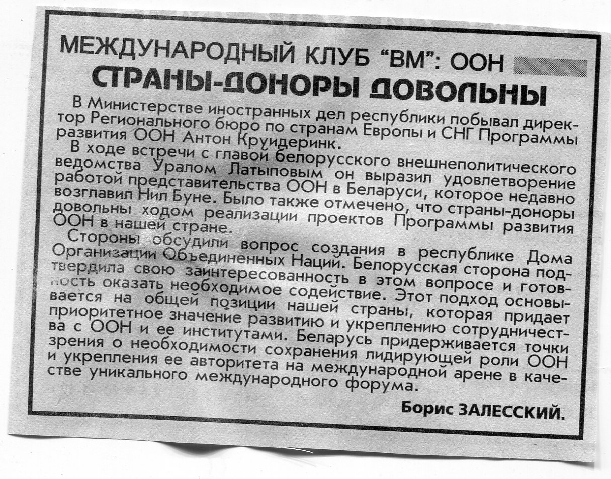 Залесский, Б. Страны-доноры довольны / Б. Залесский // Вечерний Минск. - 1999. - 26 июл.