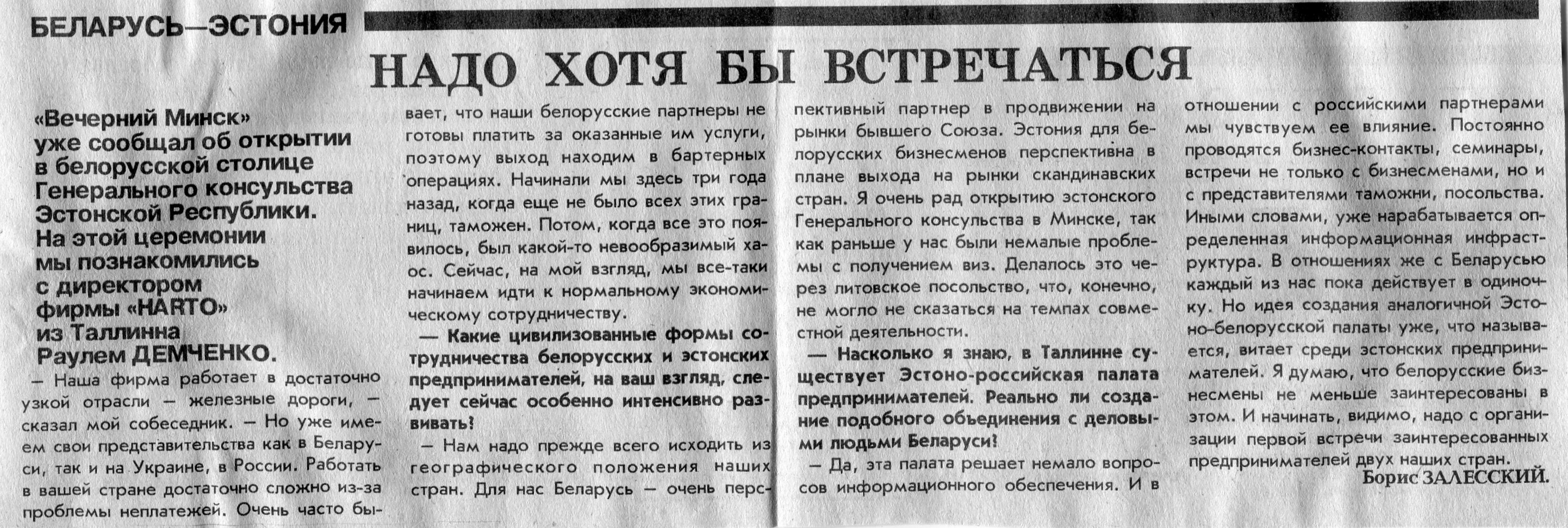 Залесский, Б. 2. Соседям надо понимать друг друга / Б. Залесский // Вечерний Минск. - 1995. - 13 февр.