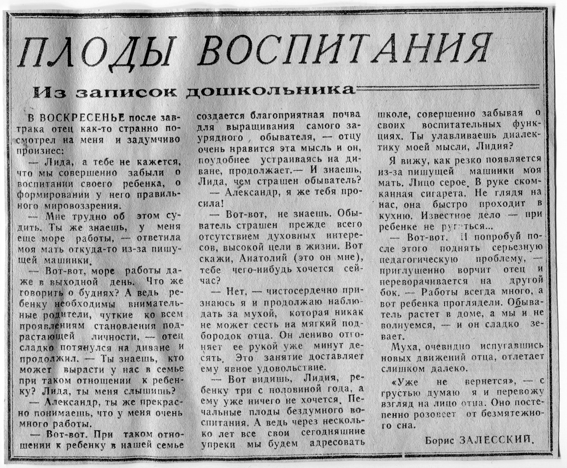 Залесский, Б. Плоды воспитания / Б. Залесский // Трактор. - 1978. - 25 нояб.