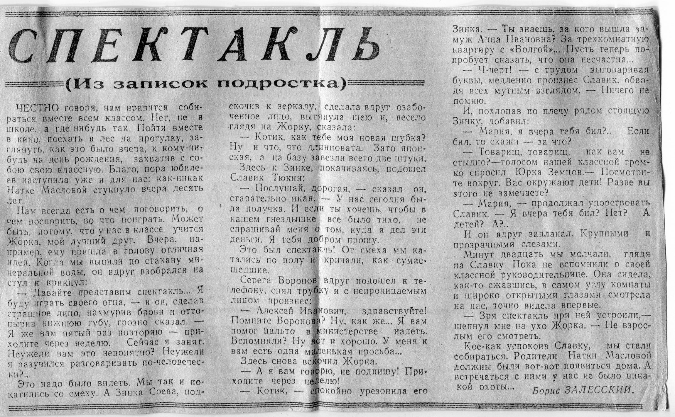 Залесский, Б. Спектакль / Б. Залесский // Трактор. - 1979. - 25 янв.