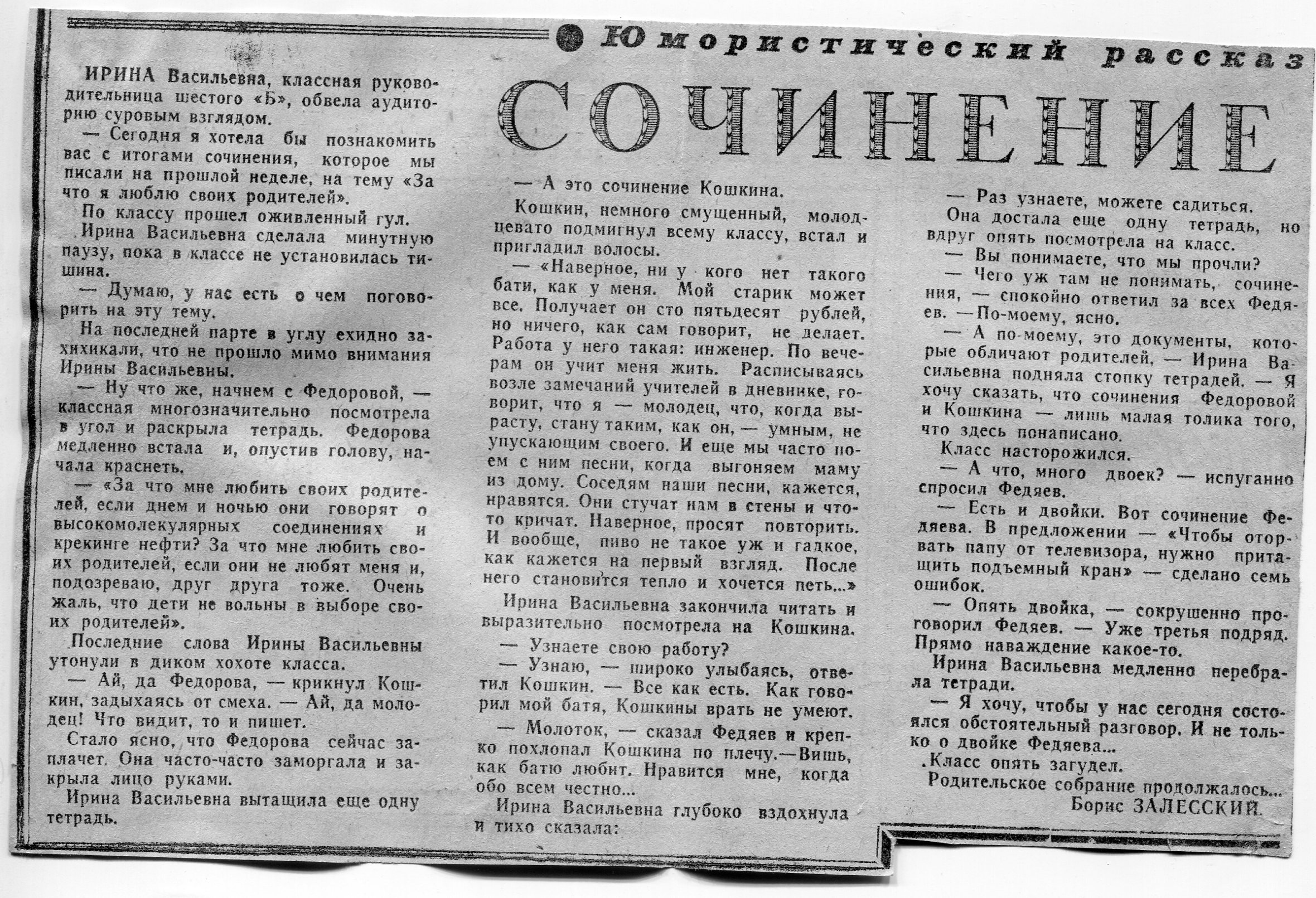 Залесский, Б. Сочинение / Б. Залесский // Трактор. - 1979. - 27 февр.