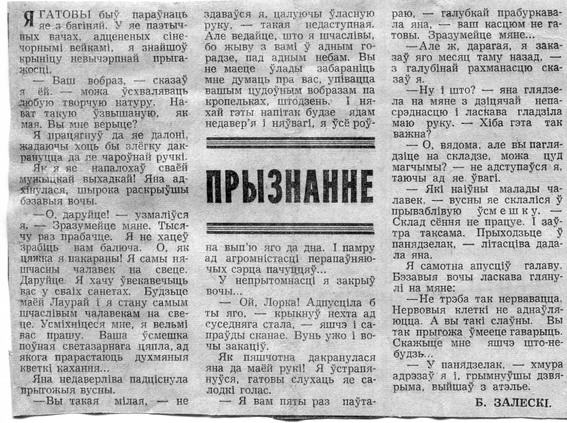 Залескі, Б. Прызнанне / Б. Залескі // Святло камунізму. -1977. - 18 мая.