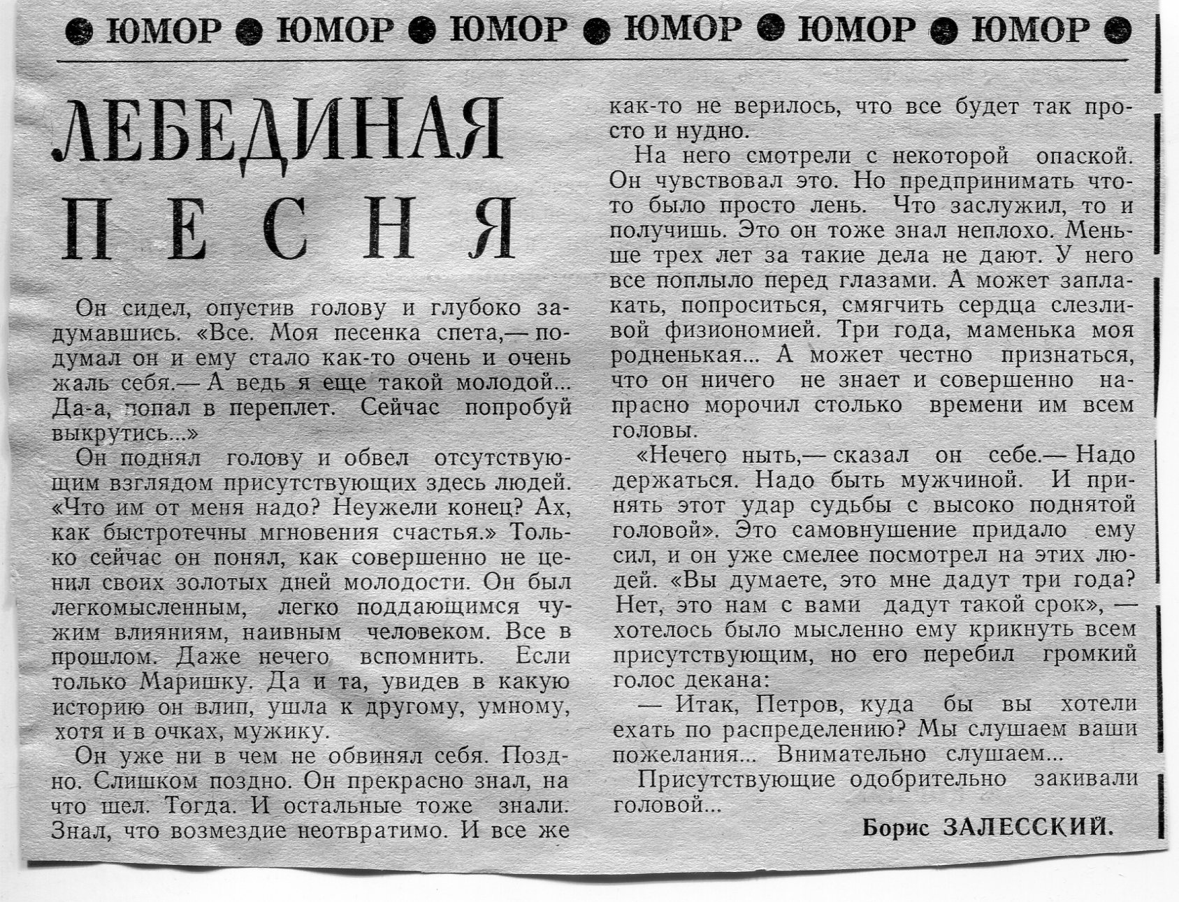 Залесский, Б. Лебединая песня / Б. Залесский // Советский инженер. - 1977. - 25 февр.