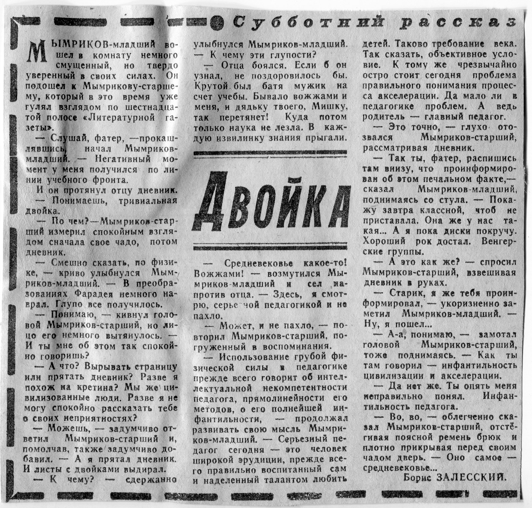 Залесский, Б. Двойка / Б. Залесский // Трактор. - 1979. - 17 февр.