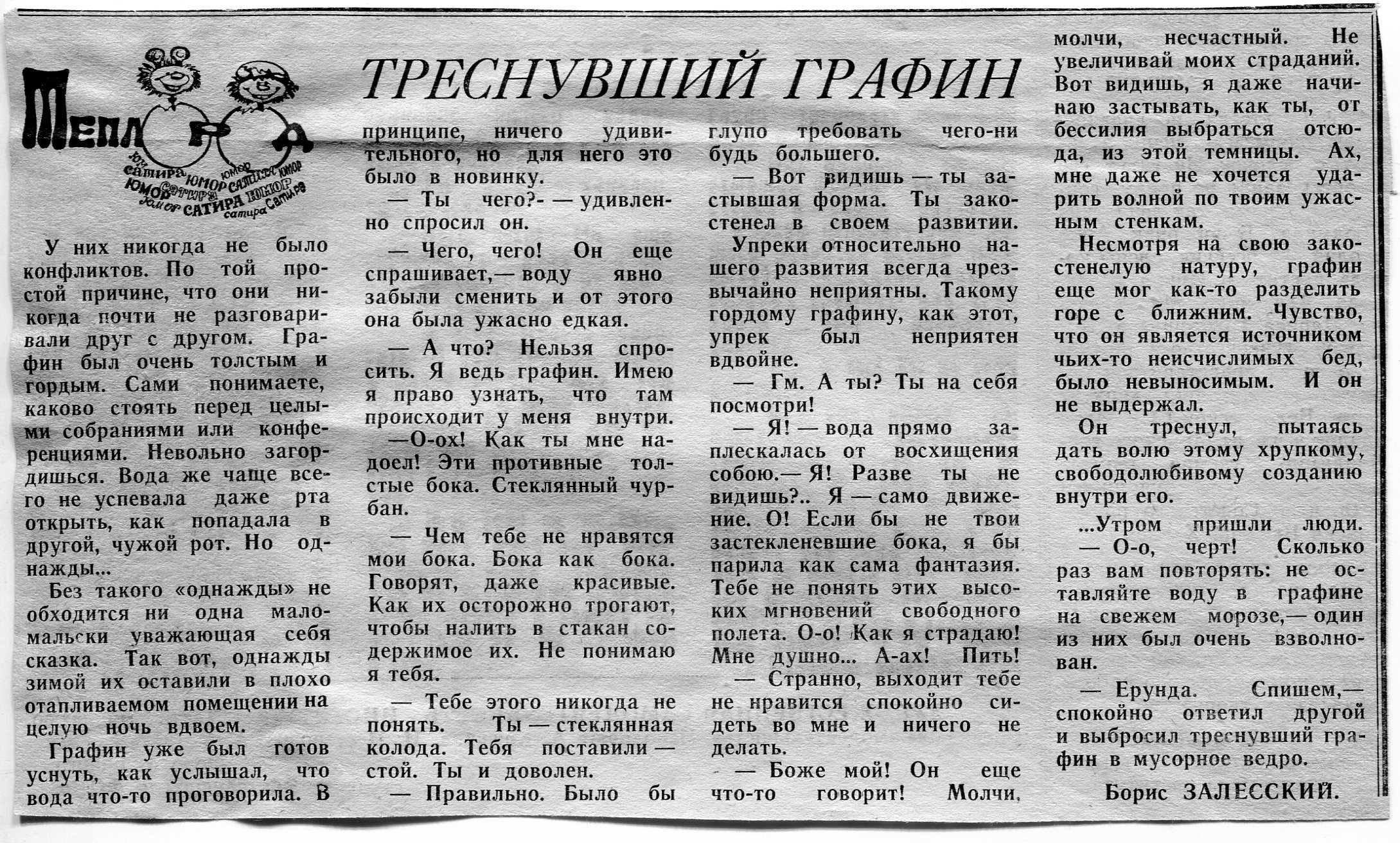Залесский, Б. Треснувший графин / Б. Залесский // Советский инженер. - 1976. - 17 сент.