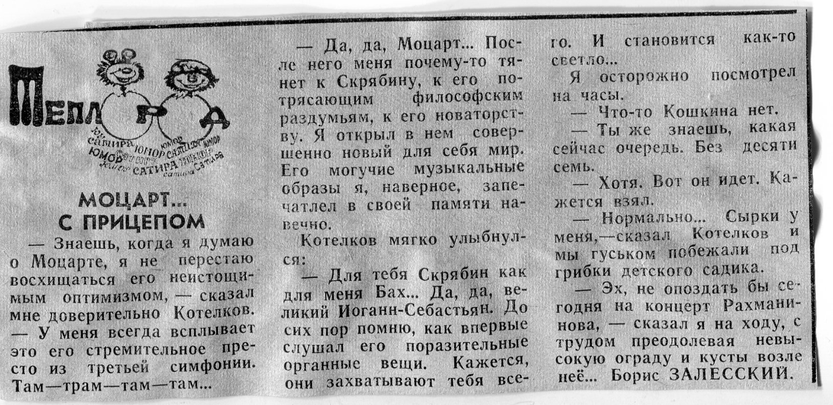 Залесский, Б. Моцарт ... с прицепом / Б. Залесский // Советский инженер. - 1977. - 9 сент.