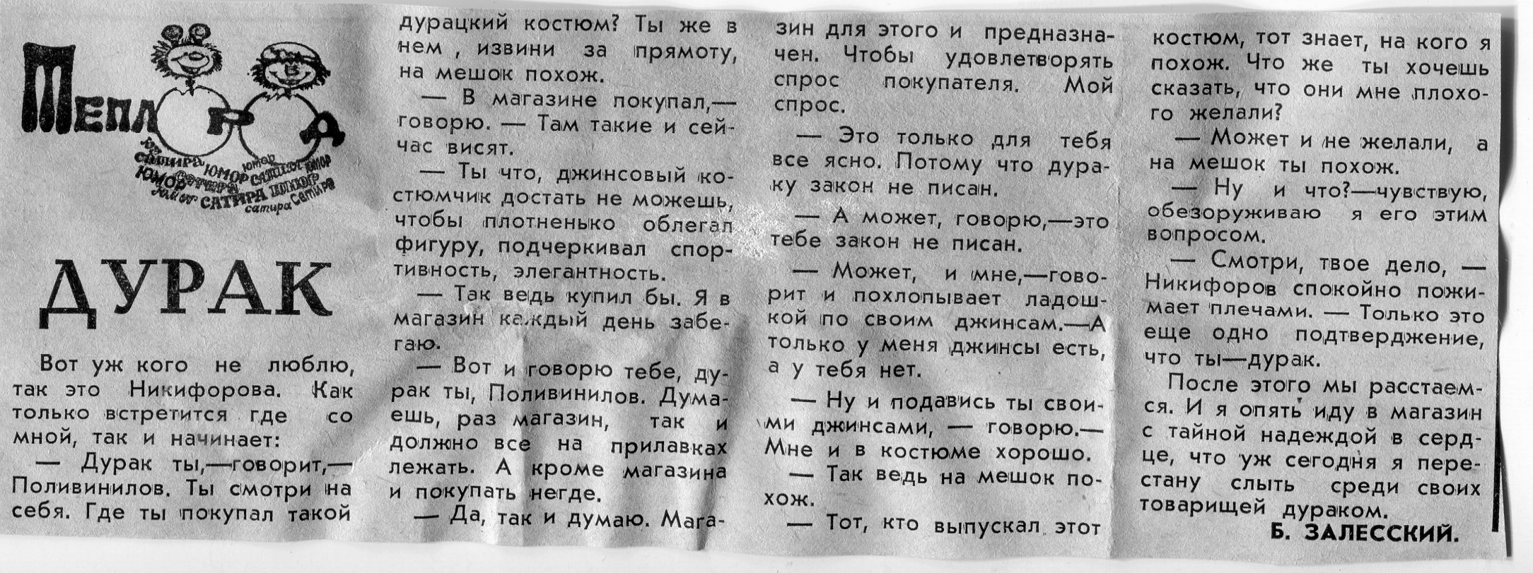 Залесский, Б. Дурак / Б. Залесский // Советский инженер. - 1977. - 14 окт.