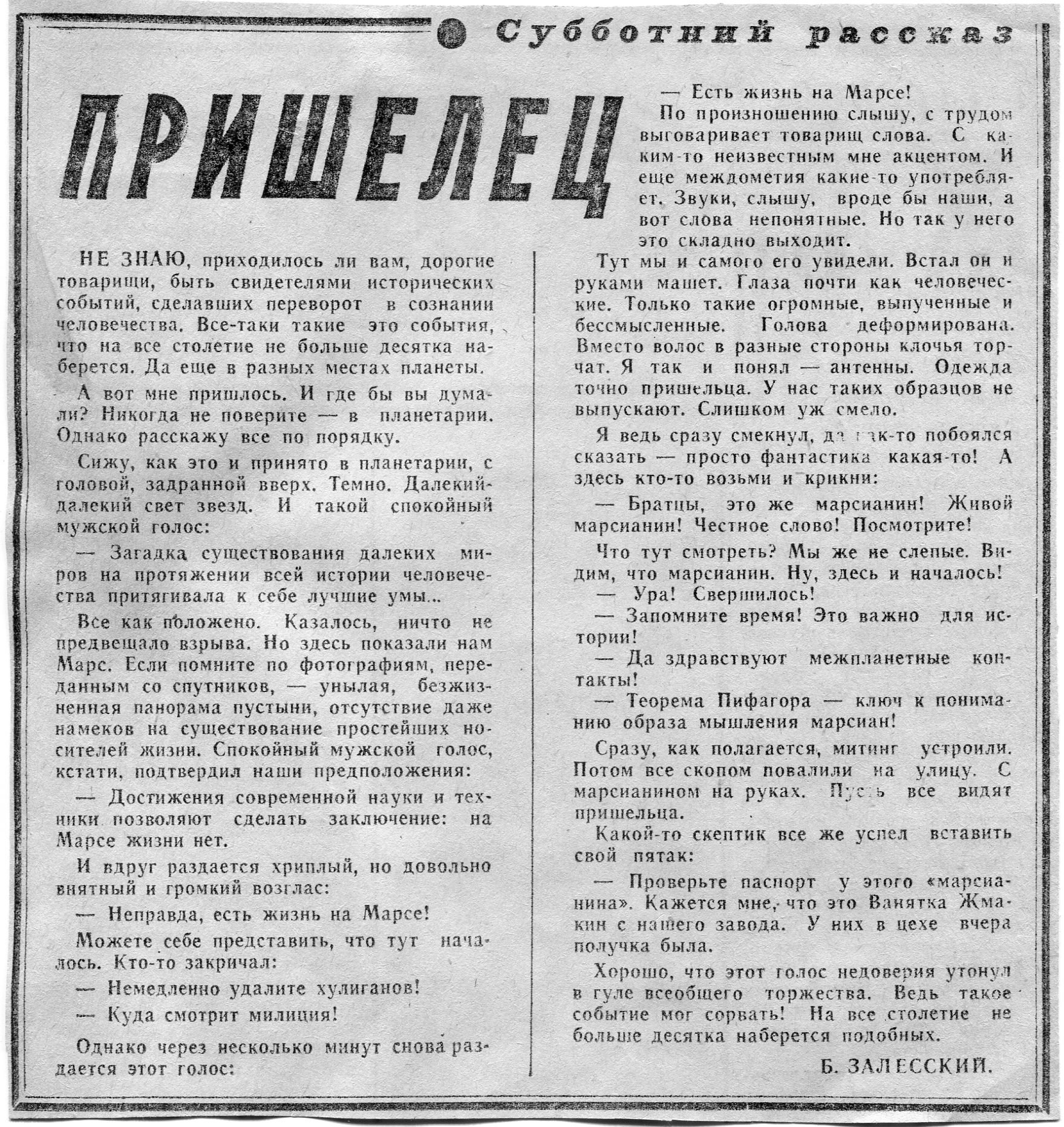 Залесский, Б. Пришелец / Б. Залесский // Трактор. - 1979. - 13 янв.