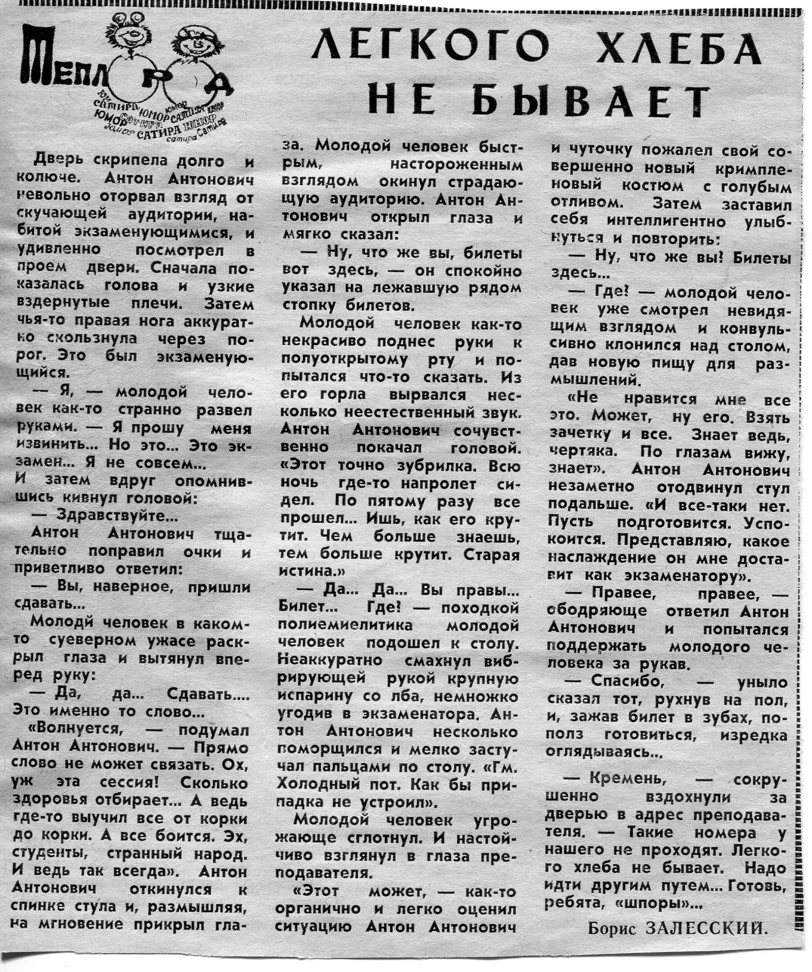 Залесский, Б. Легкого хлеба не бывает / Б. Залесский // Советский инженер. - 1977. - 10 июн.