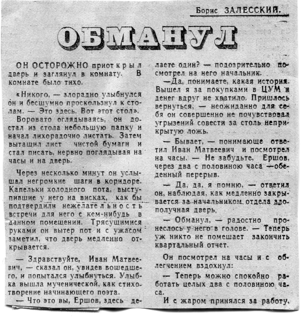 Залесский, Б. Обманул / Б. Залесский // Трактор. - 1978. - 19 авг.