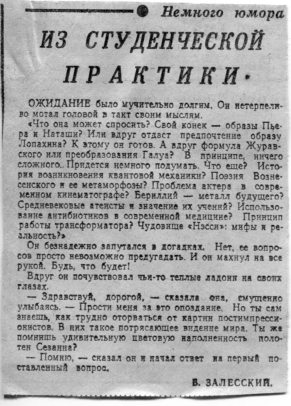 Залесский, Б. Из студенческой практики / Б. Залесский // Трактор. - 1978. - 22 июн.