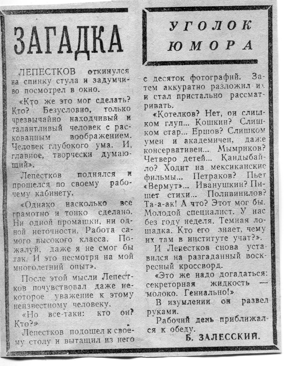 Залесский, Б. Загадка / Б. Залесский // Трактор. - 1978. - 22 сент.
