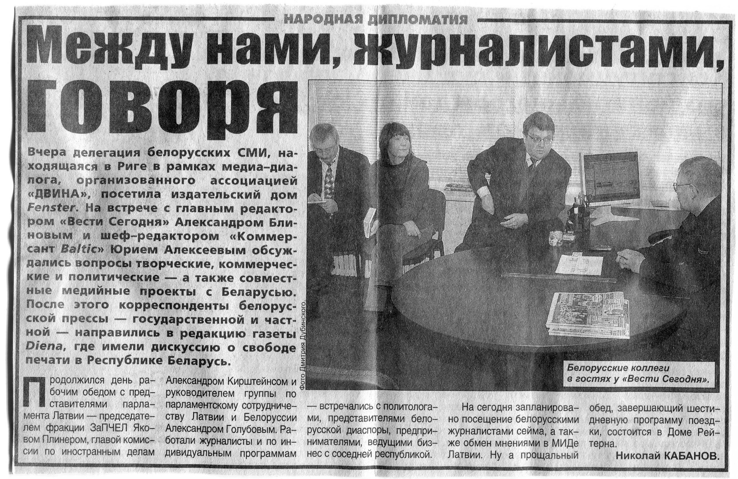 Кабанов, Н. Между нами, журналистами, говоря / Н. Кабанов // Вести сегодня. - 2005. - 8 мар.