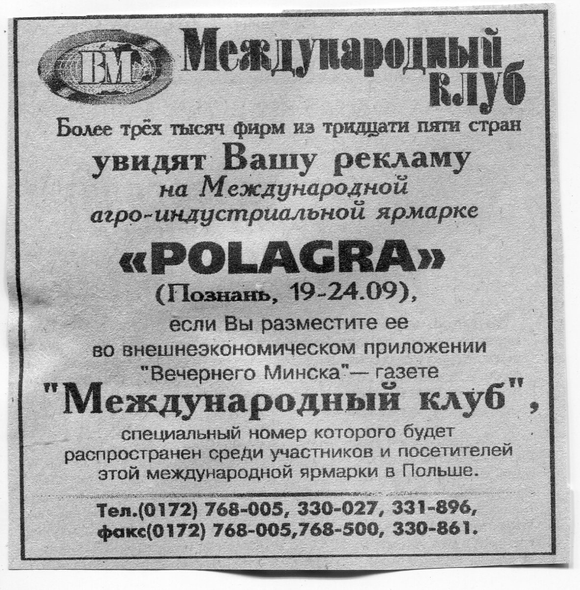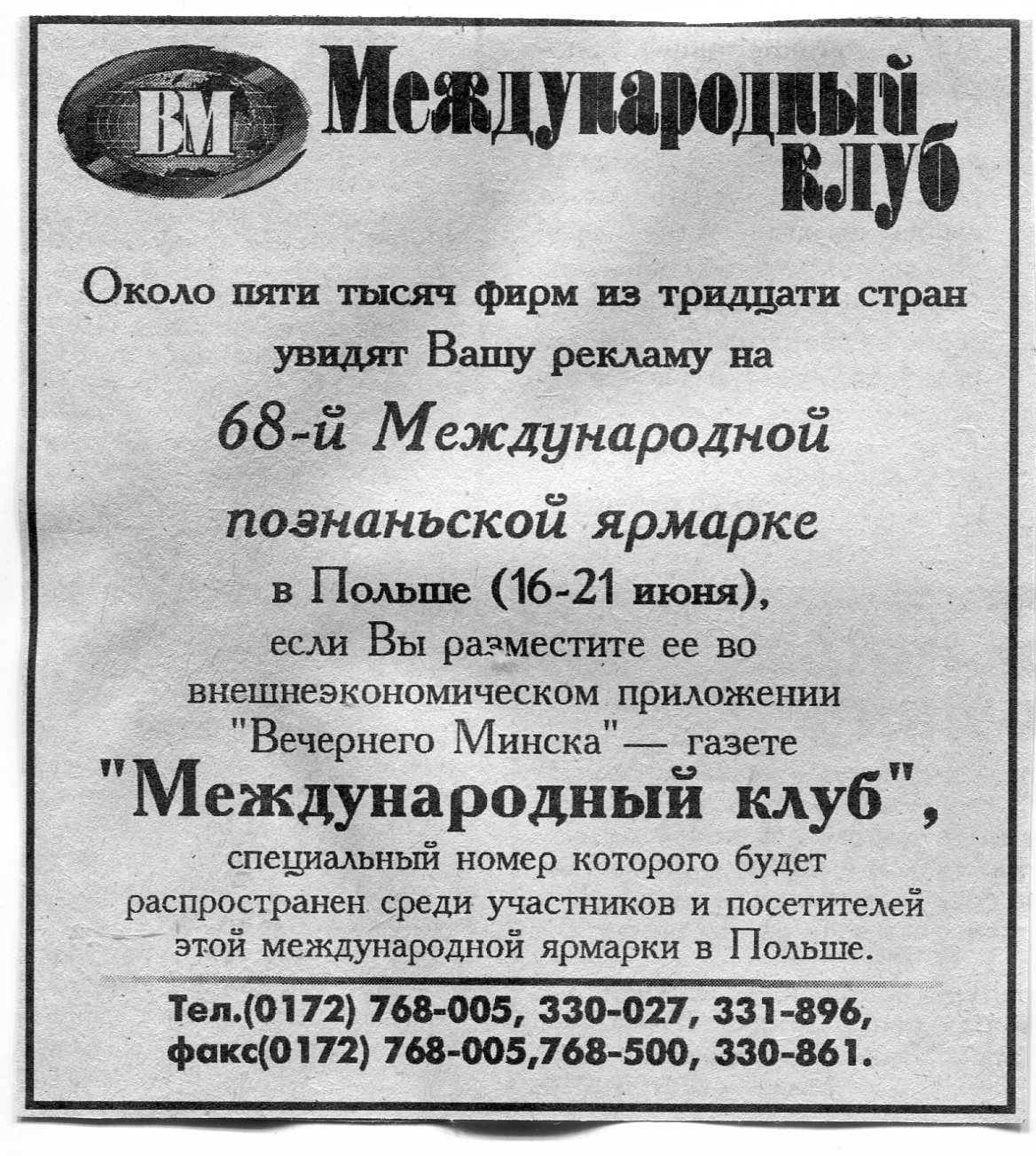 Международный клуб // Вечерний Минск. - 1996.- 2 сент.