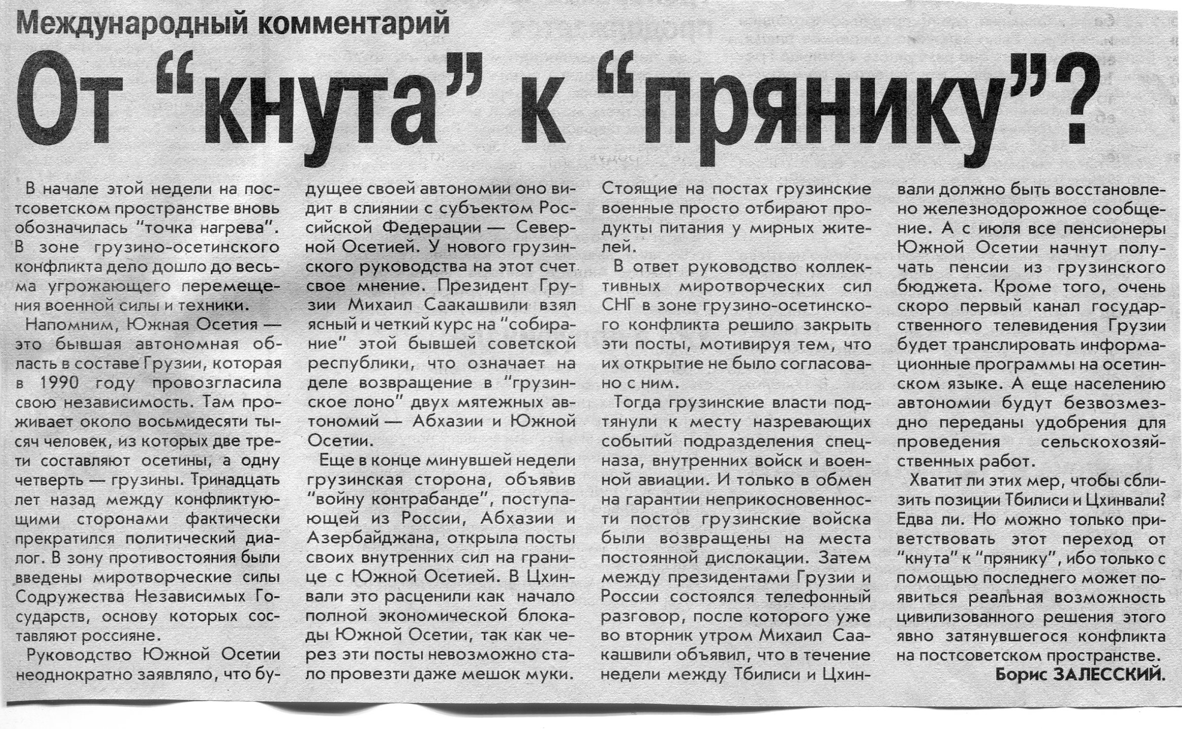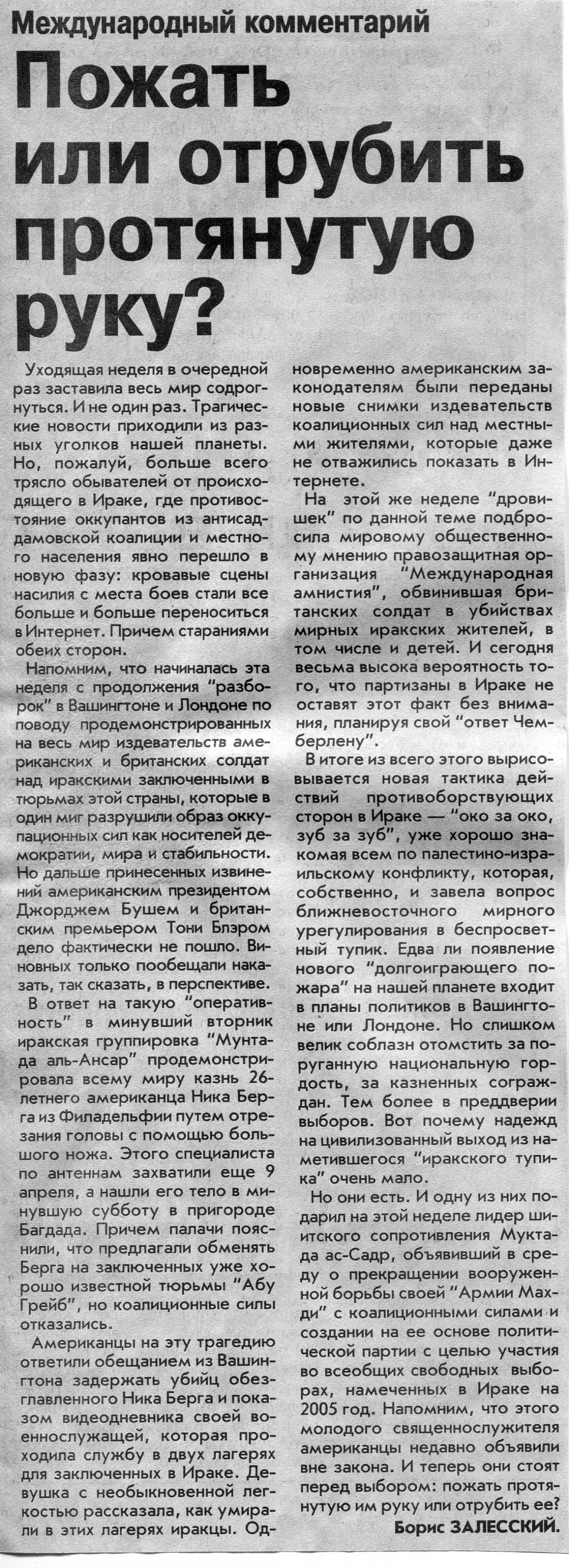 Залесский, Б. Пожать или отрубить протянутую руку? / Б. Залесский // Вечерний Минск. - 2004. - 14 мая.