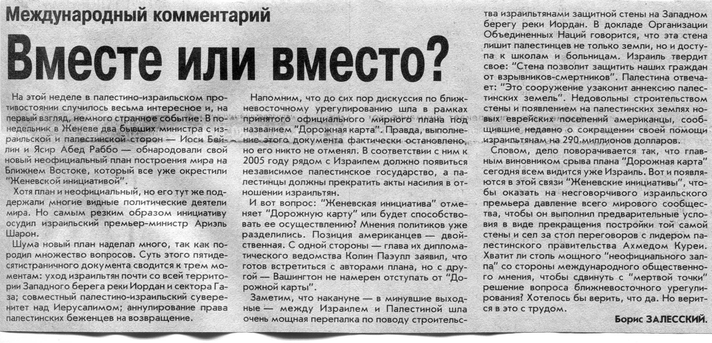 Залесский, Б. Приведет ли к миру "Дорожная карта"? / Б. Залесский // Вечерний Минск. - 2003. - 12 мая.