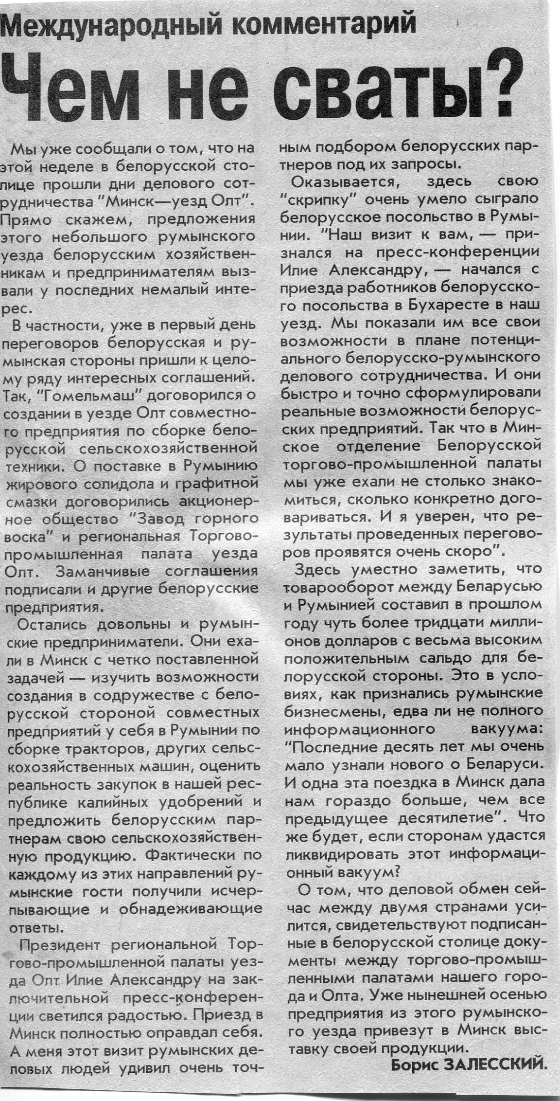 Залесский, Б. Чем не сваты? / Б. Залесский // Вечерний Минск. - 2002.- 14 июн.