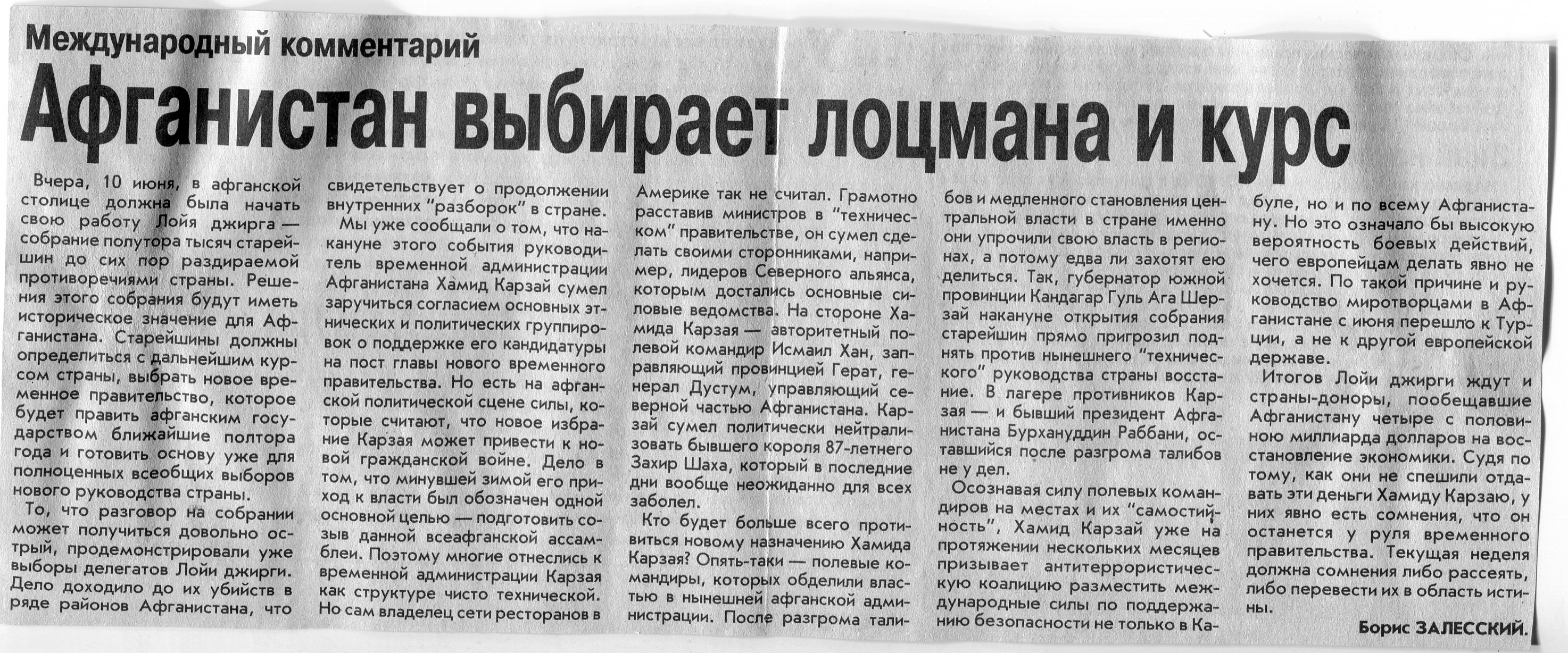 Залесский, Б. Афганистан выбирает лоцмана и курс / Б. Залесский // Вечерний Минск. - 2002. - 11 июн.