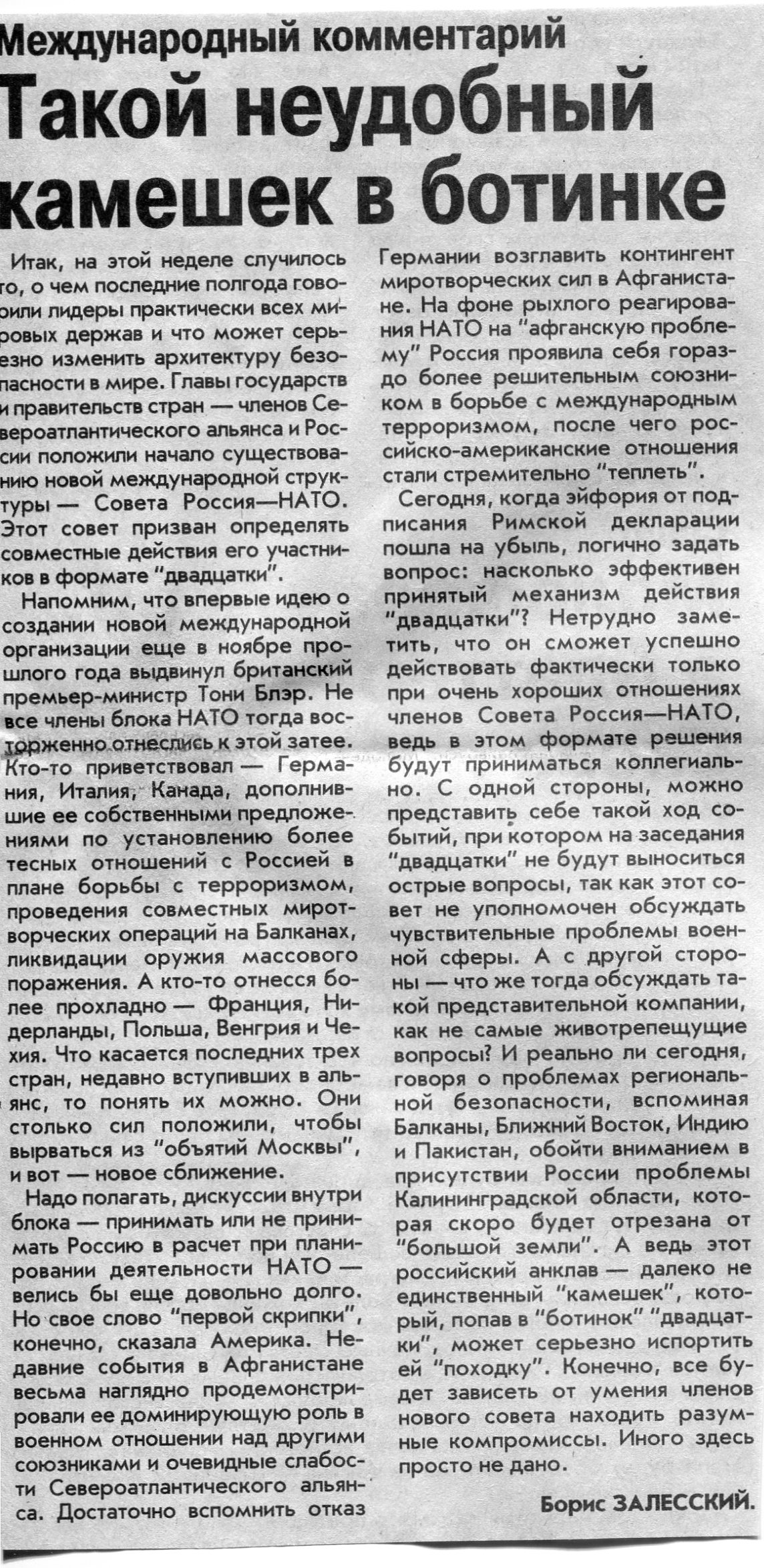 Залесский, Б. Такой неудобный камешек в ботинке / Б. Залесский // Вечерний Минск. - 2002. - 31 мая.