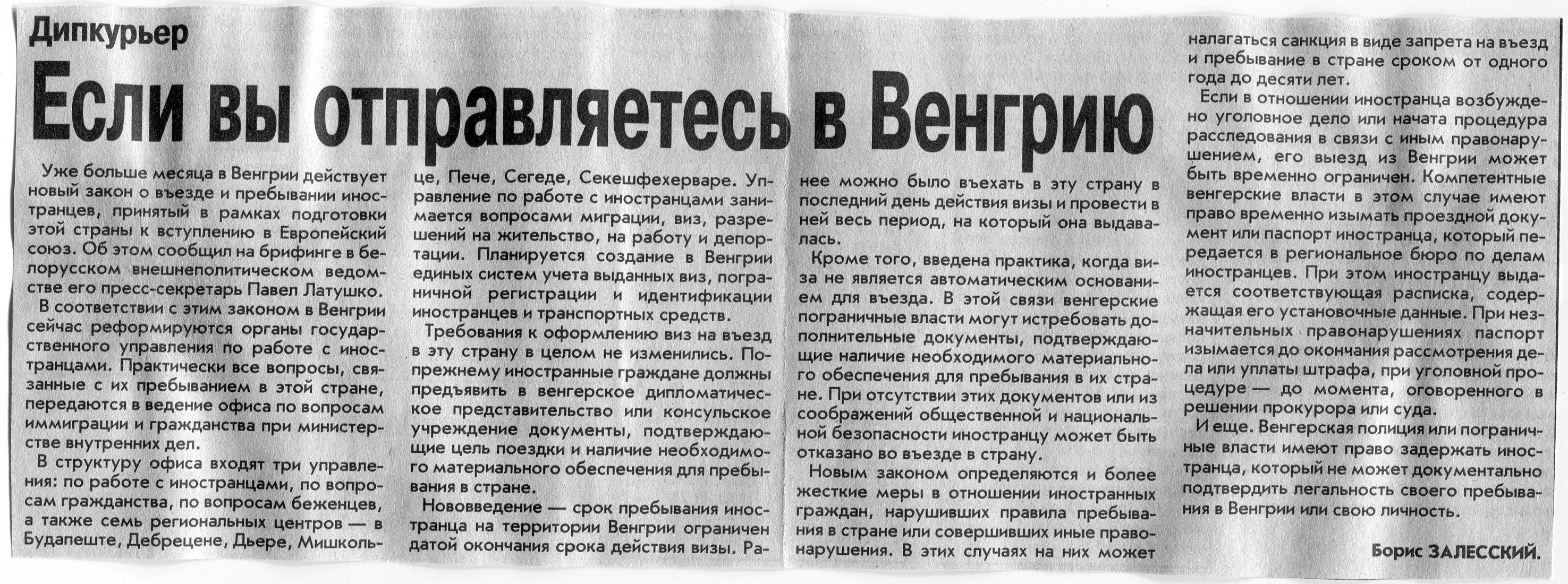 Залесский, Б. Если вы отправляетесь в Венгрию / Б. Залесский // Вечерний Минск. - 2002. - 12 мар.