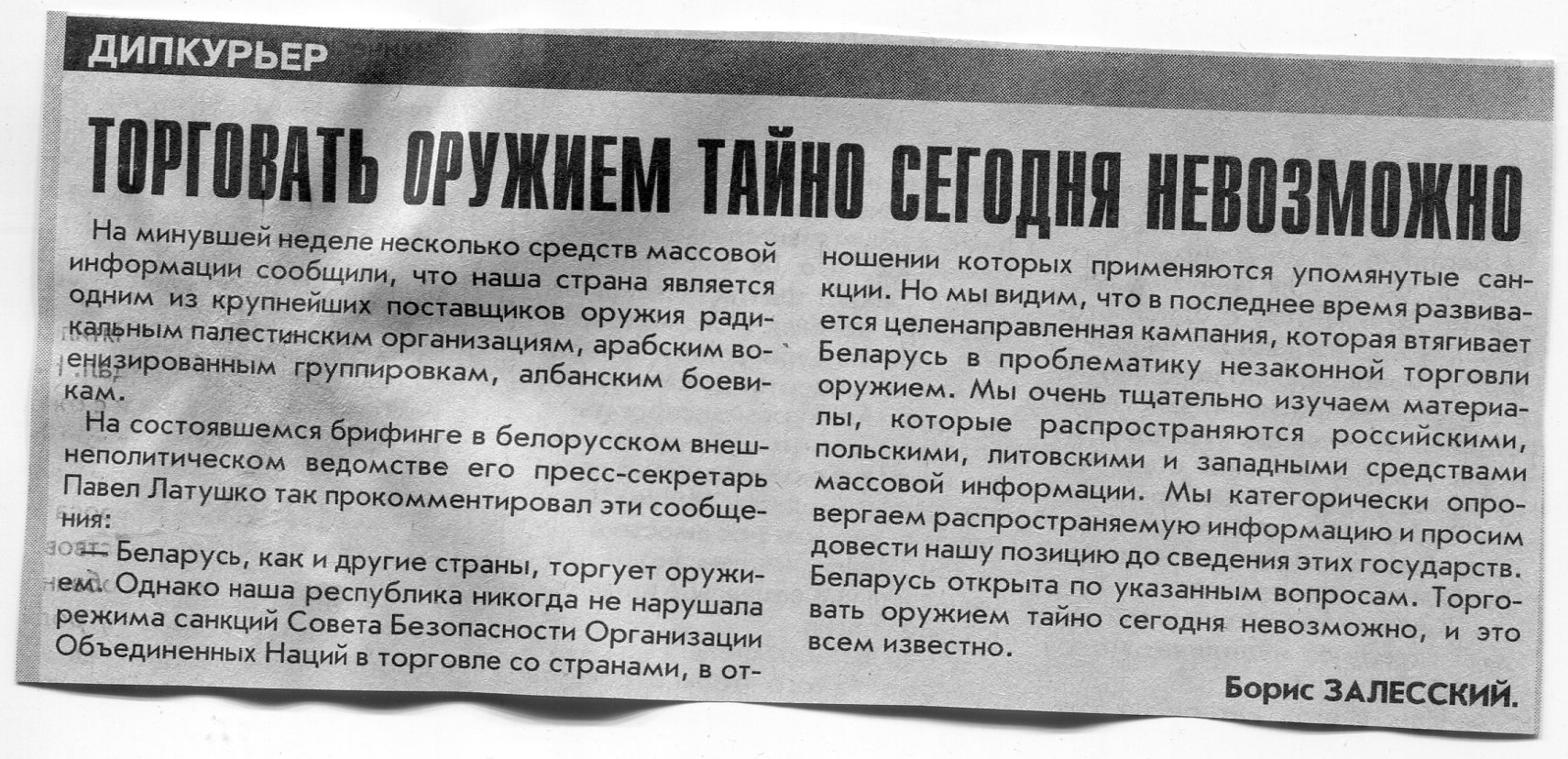 Залесский, Б. Торговать оружием тайно сегодня невозможно / Б. Залесский // Вечерний Минск. - 2001. - 5 нояб.