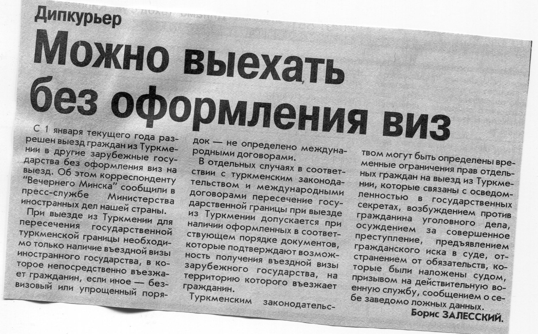 Залесский, Б. Можно выехать без оформления виз / Б. Залесский // Вечерний Минск. - 2002. - 29 янв.