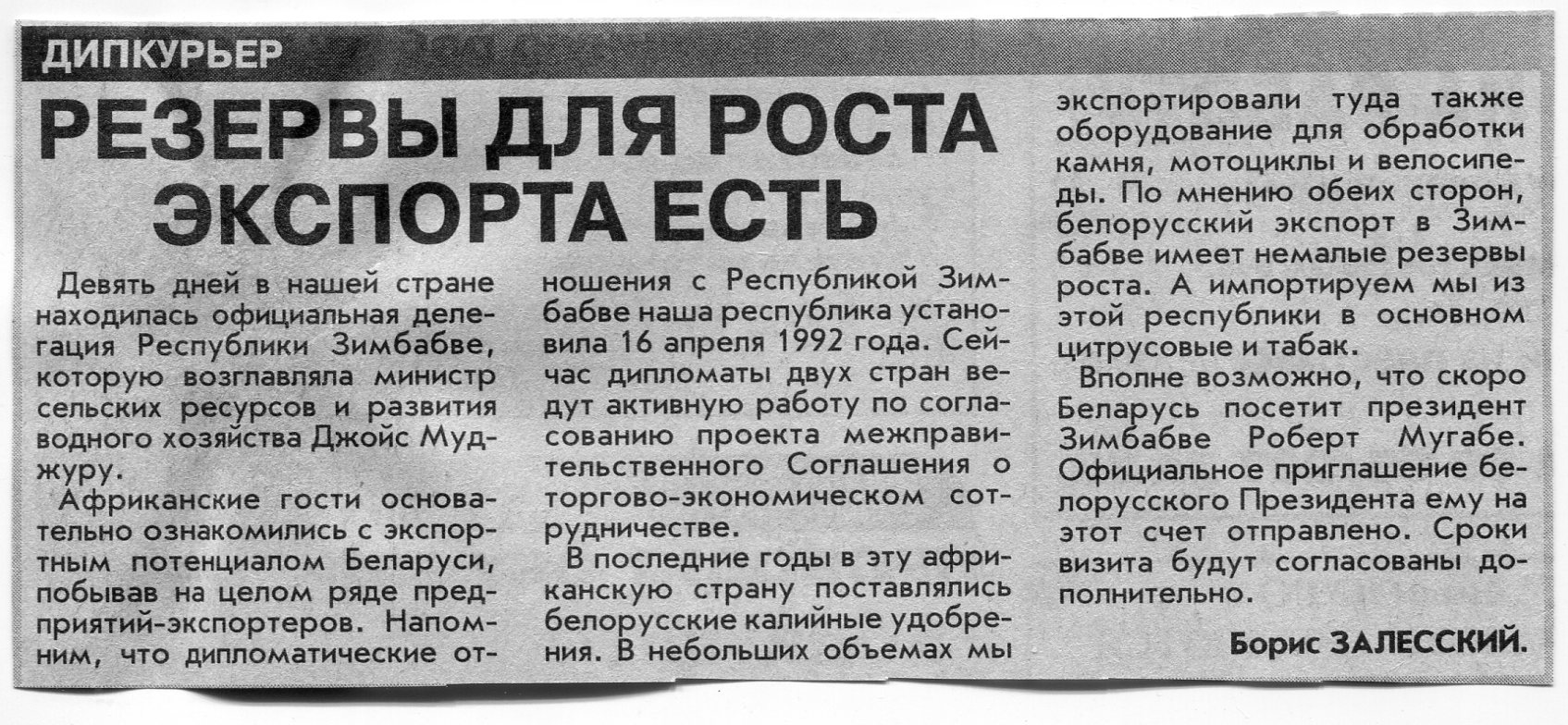 Залесский, Б. Резервы для роста экспорта есть / Б. Залесский // Вечерний Минск. - 2001. - 27 нояб.