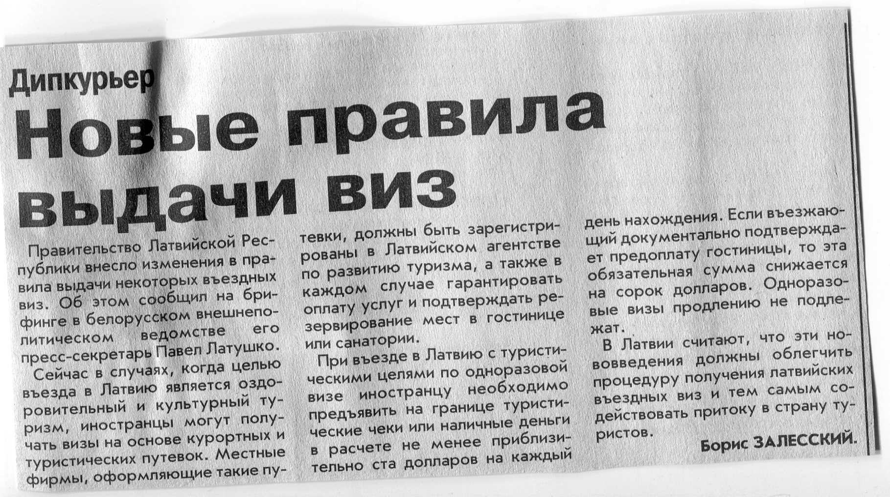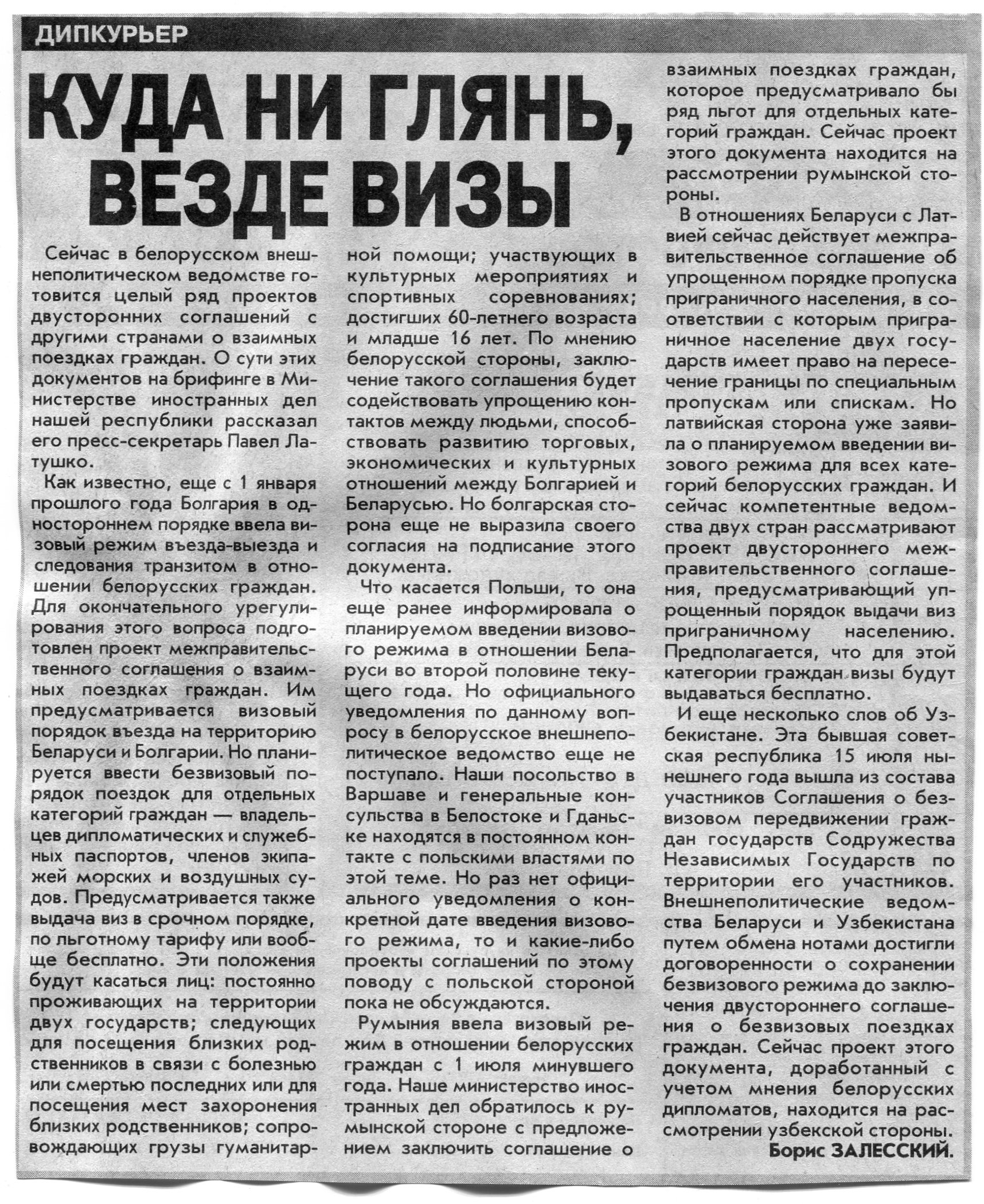 Залесский, Б. Куда ни глянь, везде визы / Б. Залесский // Вечерний Минск. - 2001. - 20 нояб.