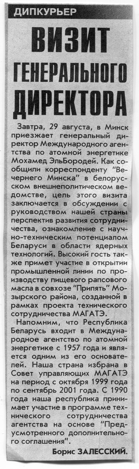 Залесский, Б. Визит генерального директора / Б. Залесский // Вечерний Минск. - 2001. - 28 авг.