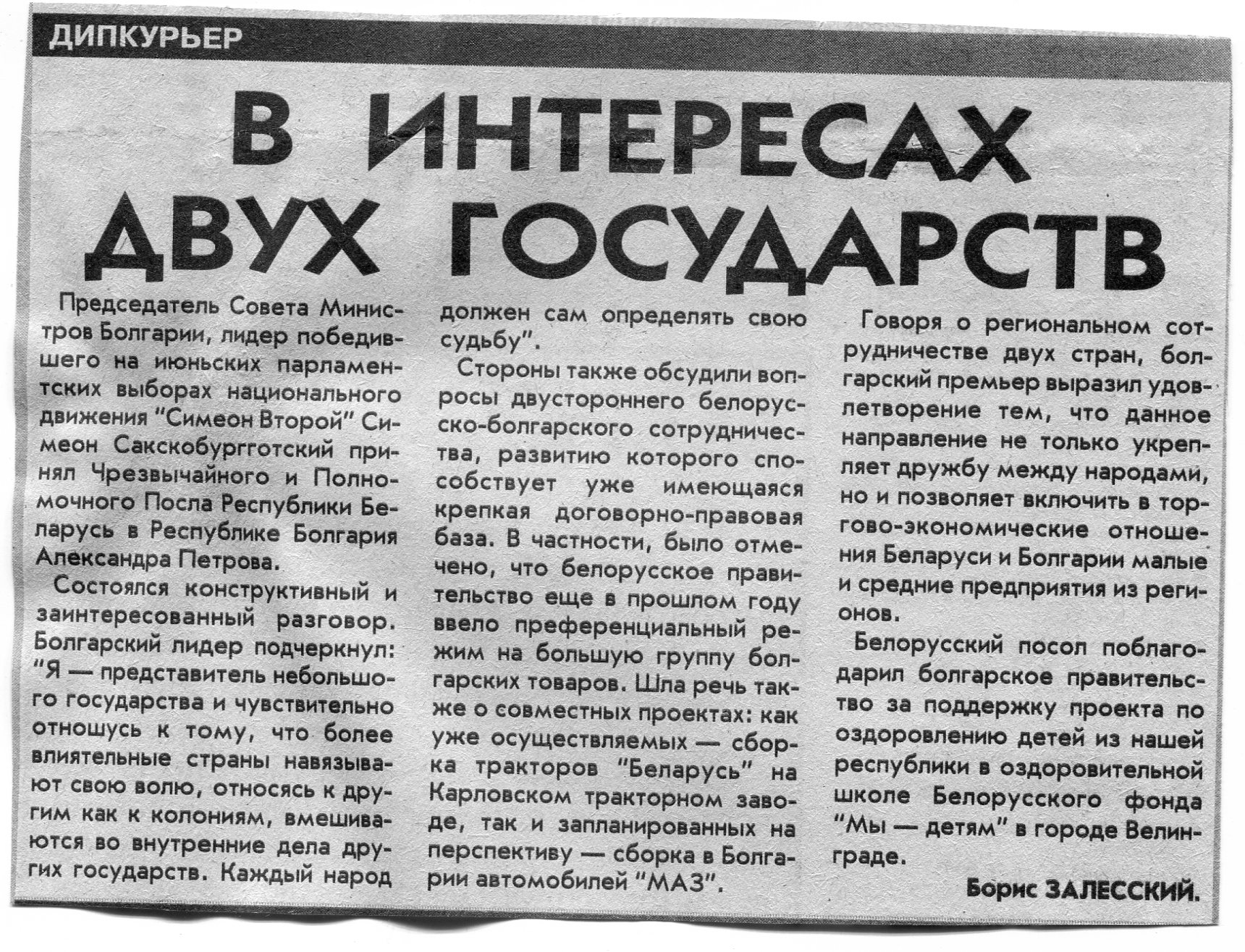 Залесский, Б. В интересах двух государств / Б. Залесский // Вечерний Минск. - 2001. - 24 сент.