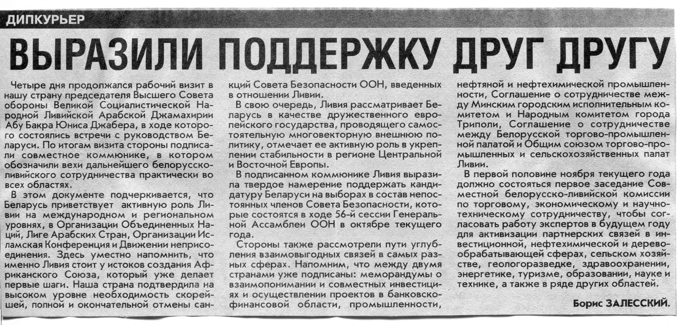 Залесский, Б. Выразили поддержку друг другу / Б. Залесский // Вечерний Минск. - 2001. - 8 окт.
