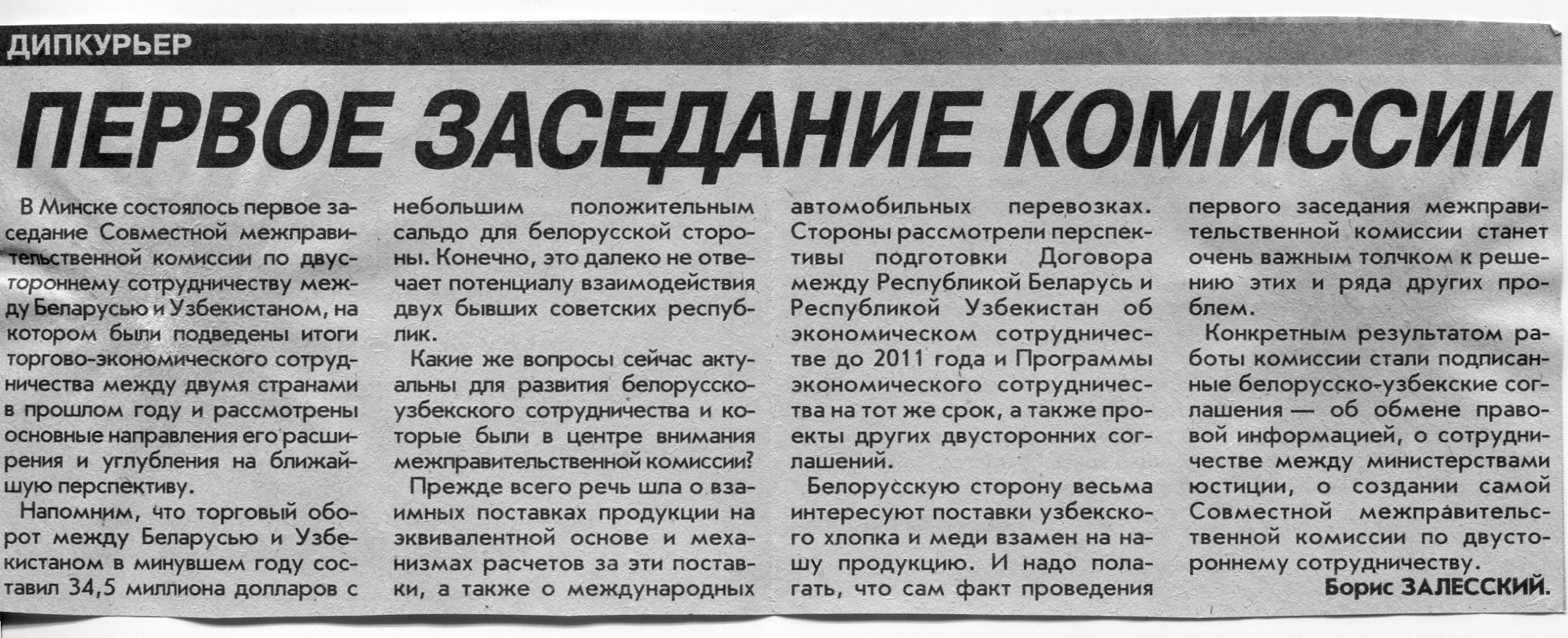 Залесский, Б. Первое заседание комиссии / Б. Залесский // Вечерний Минск. - 2001. - 29 авг.