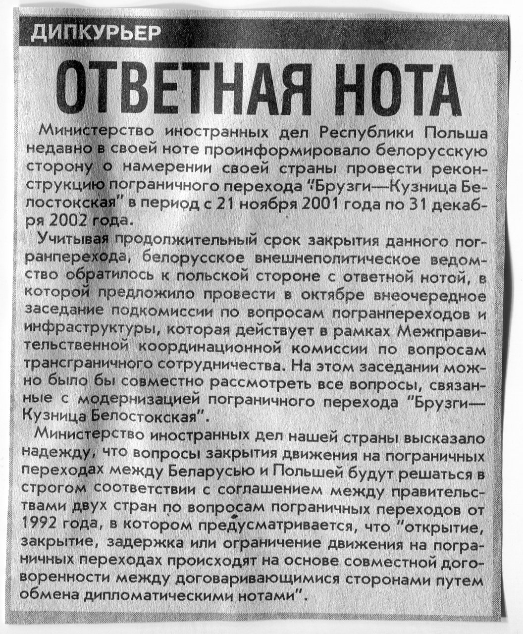 Залесский, Б. Ответная нота / Б. Залесский // Вечерний Минск. - 2001. - 5 окт.