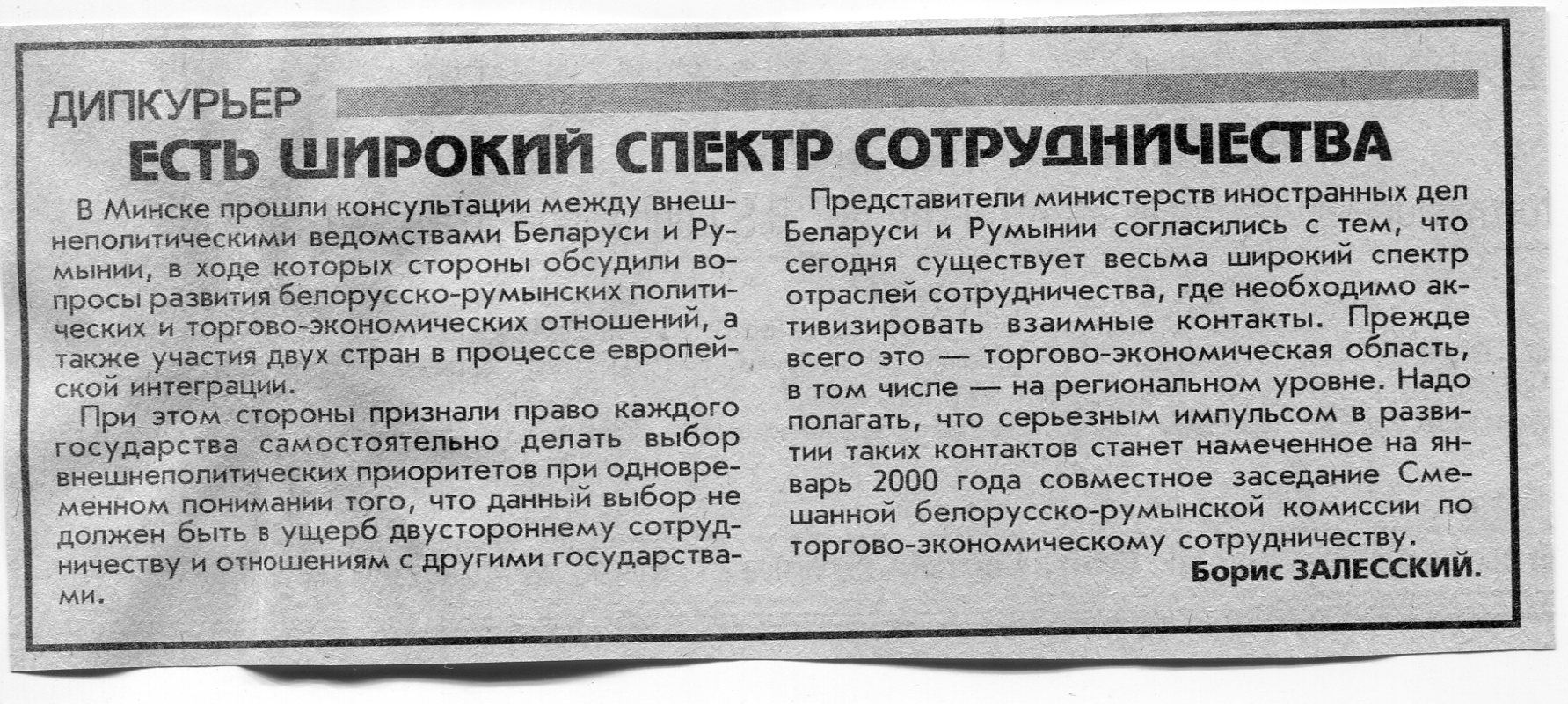 Залесский, Б. Консультации дипломатов / Б. Залесский // Вечерний Минск. - 2000. - 1 февр.
