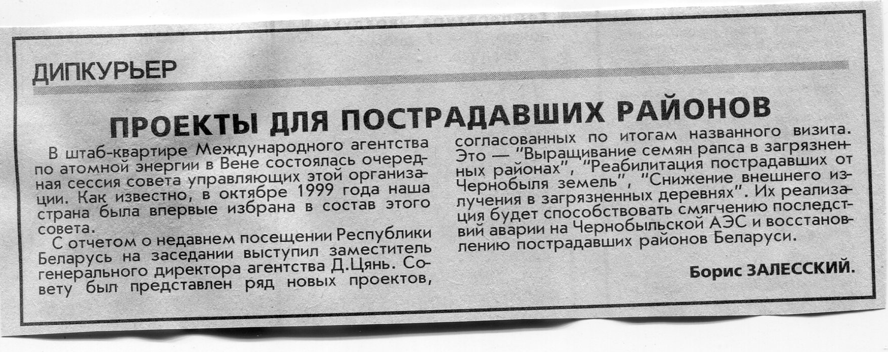 Залесский, Б. Проекты для пострадавших районов / Б. Залесский // Вечерний Минск. - 2000. - 13 янв.