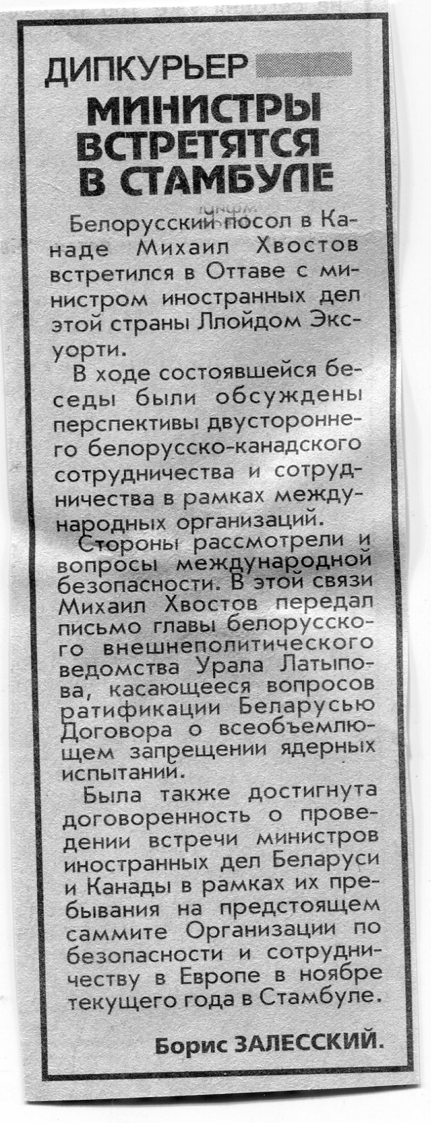 Залесский, Б. Посол опровергает слухи / Б. Залесский // Вечерний Минск. - 2000. - 21 февр.