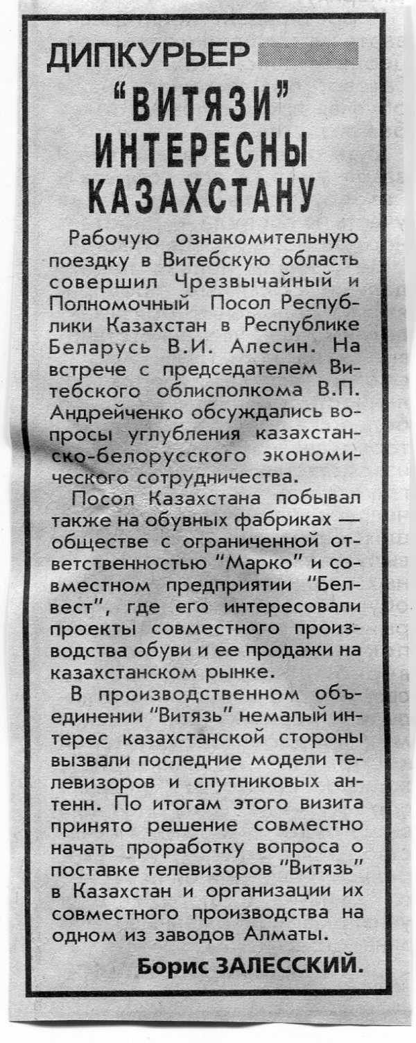 Залесский, Б. "Витязи" интересны Казахстану / Б. Залесский // Вечерний Минск. - 1999. - 24 июн.