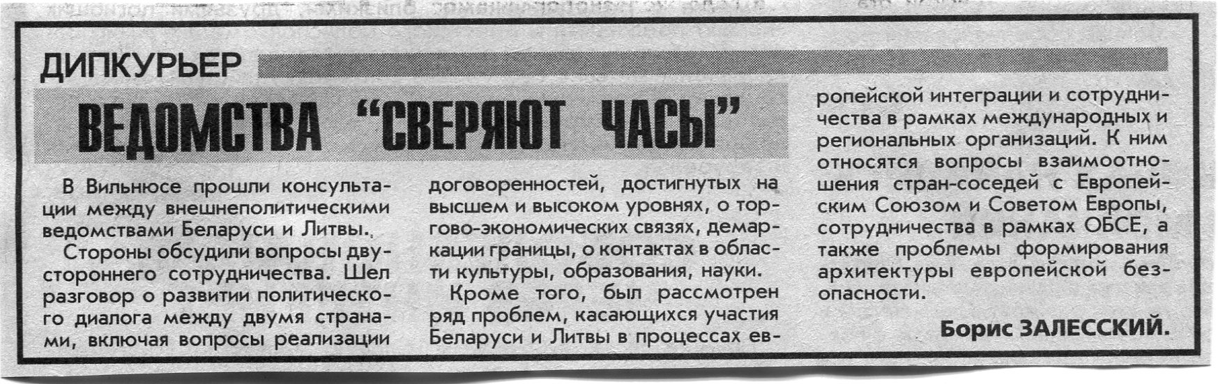 Залесский, Б. Дипломаты консультируются / Б. Залесский // Вечерний Минск. - 1999. - 12 июл.