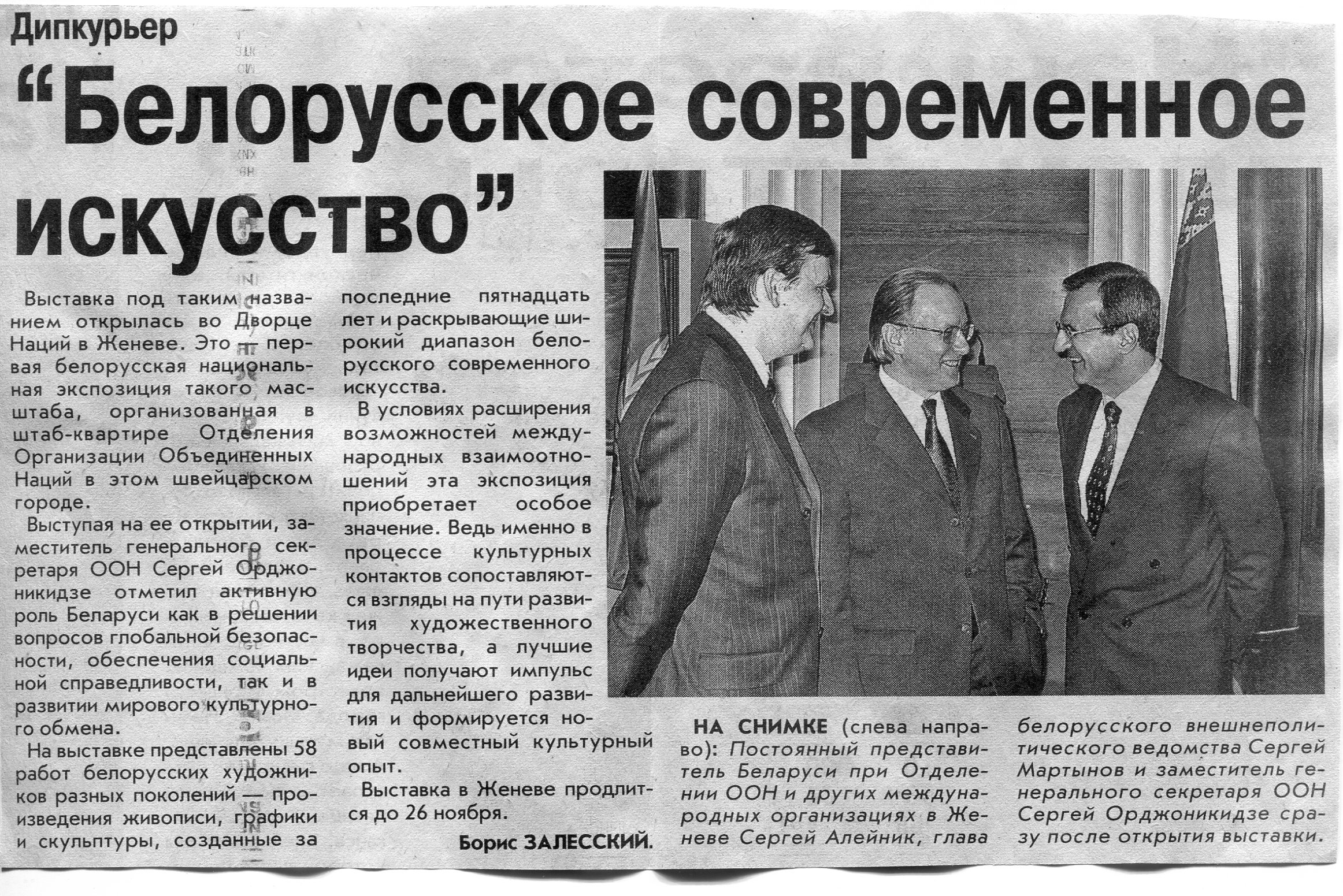 Залесский, Б. "Белорусское современное искусство" / Б. Залесский // Вечерний Минск. - 2004. - 15 нояб.