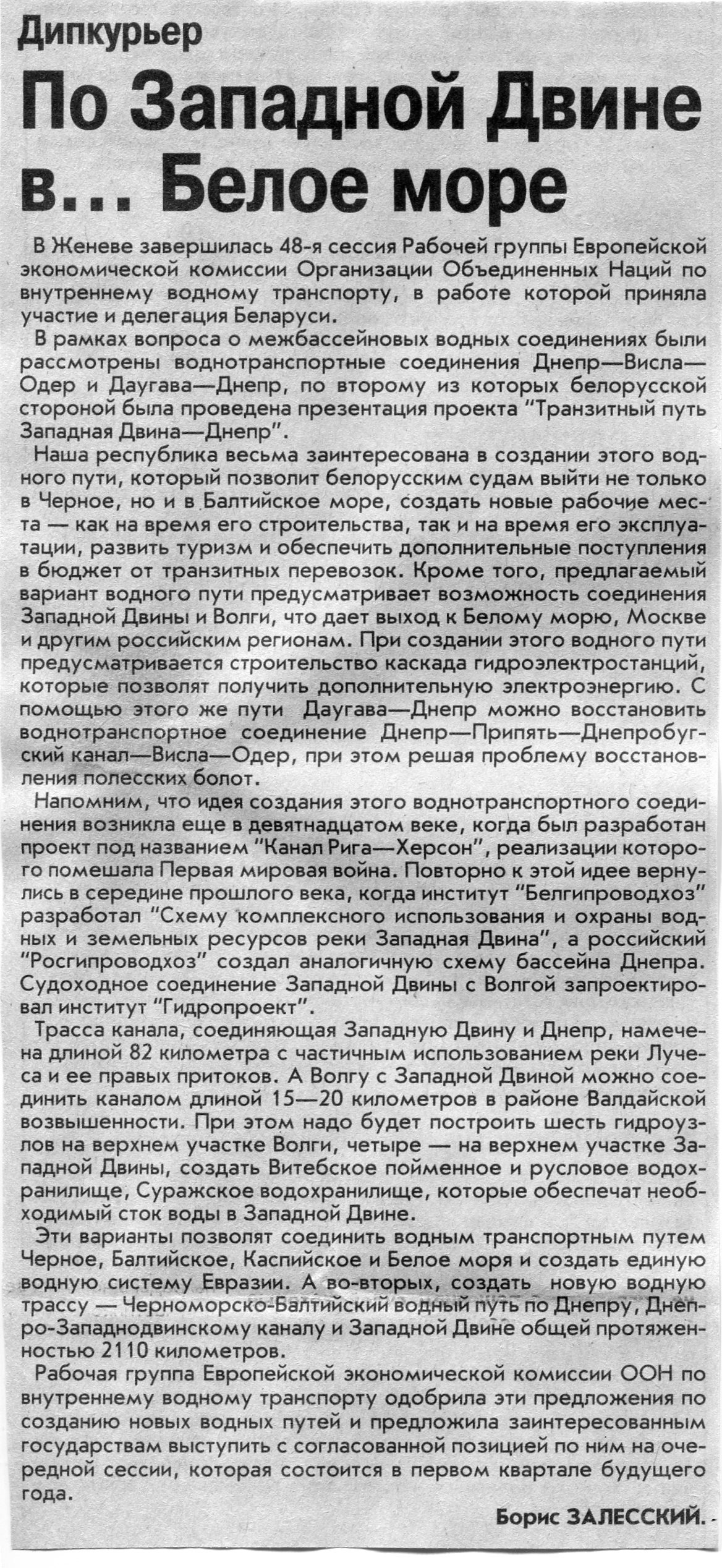 Залесский, Б. По Западной Двине в ... Белое море / Б. Залесский // Вечерний Минск. - 2004. - 26 окт.