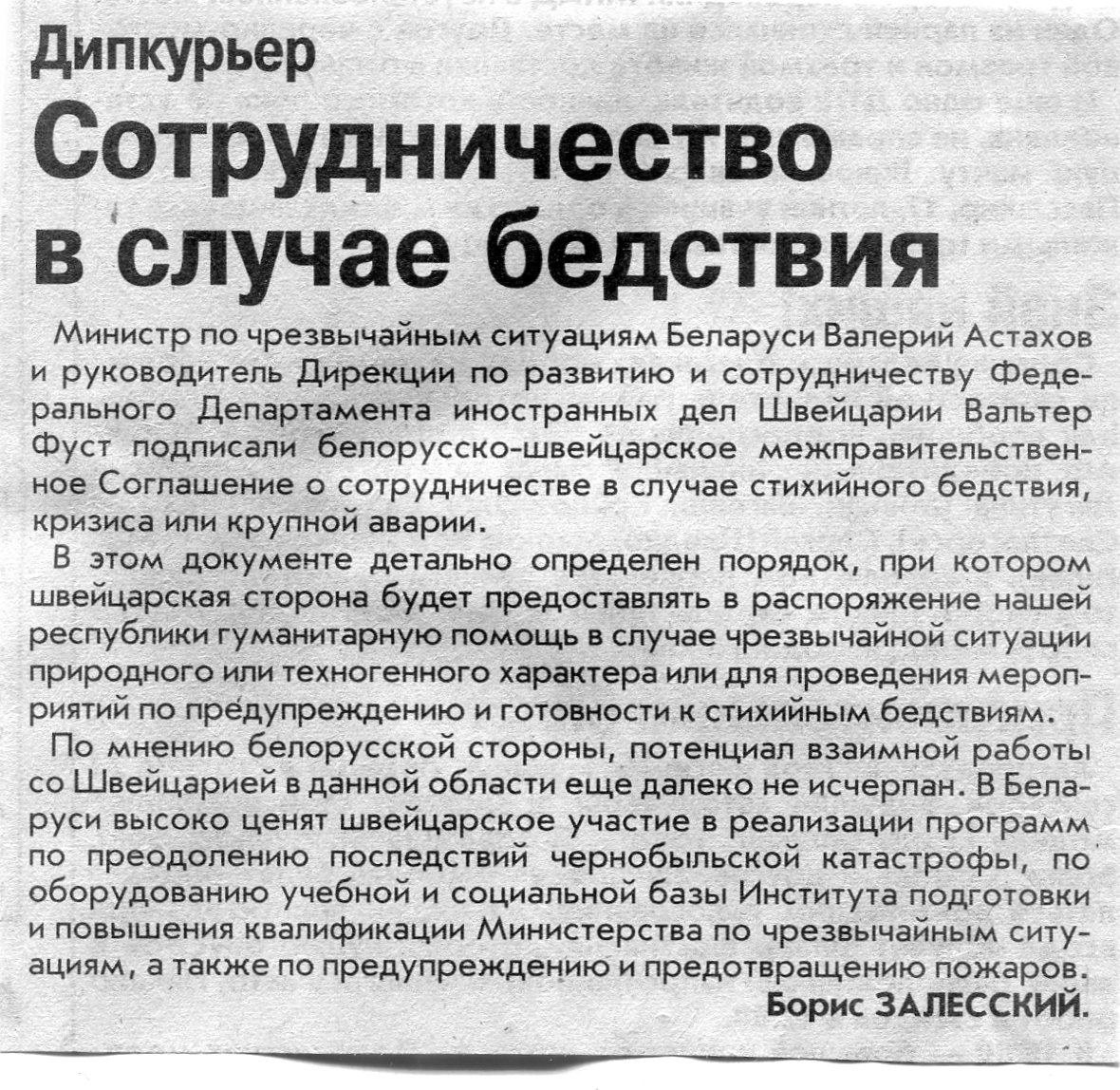 Залесский, Б. Сотрудничество в случае бедствия / Б. Залесский // Вечерний Минск. - 2004. - 21 сент.