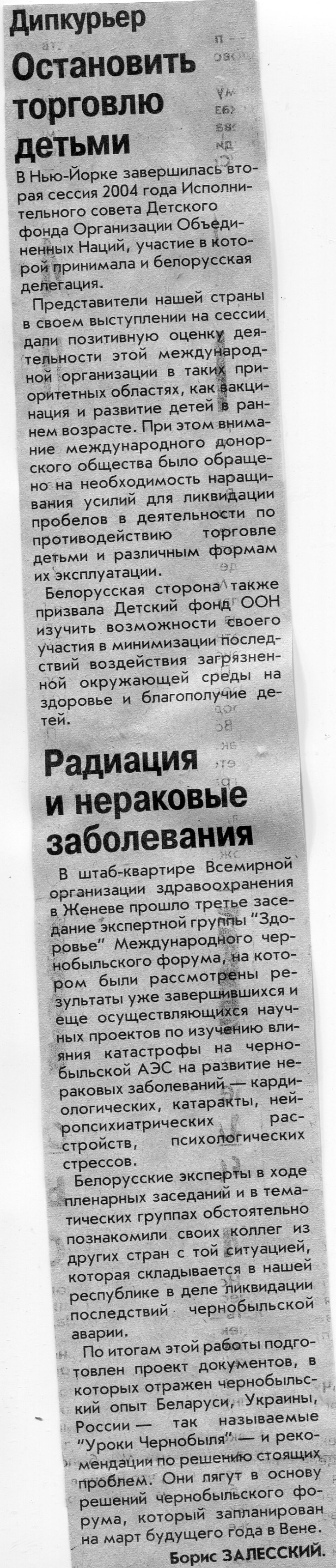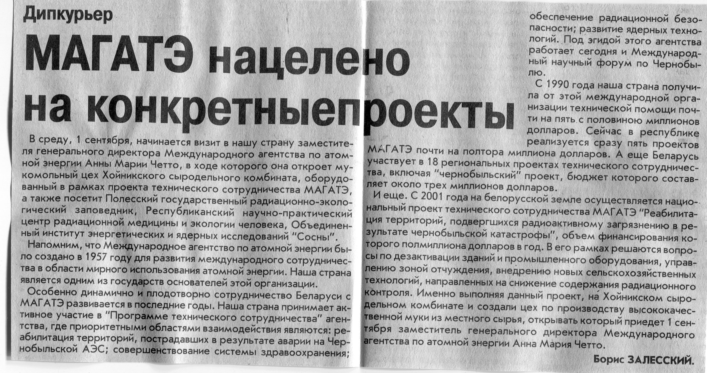 Залесский, Б. МАГАТЭ нацелено на конкретные проекты / Б. Залесский // Вечерний Минск. - 2004. - 30 авг.