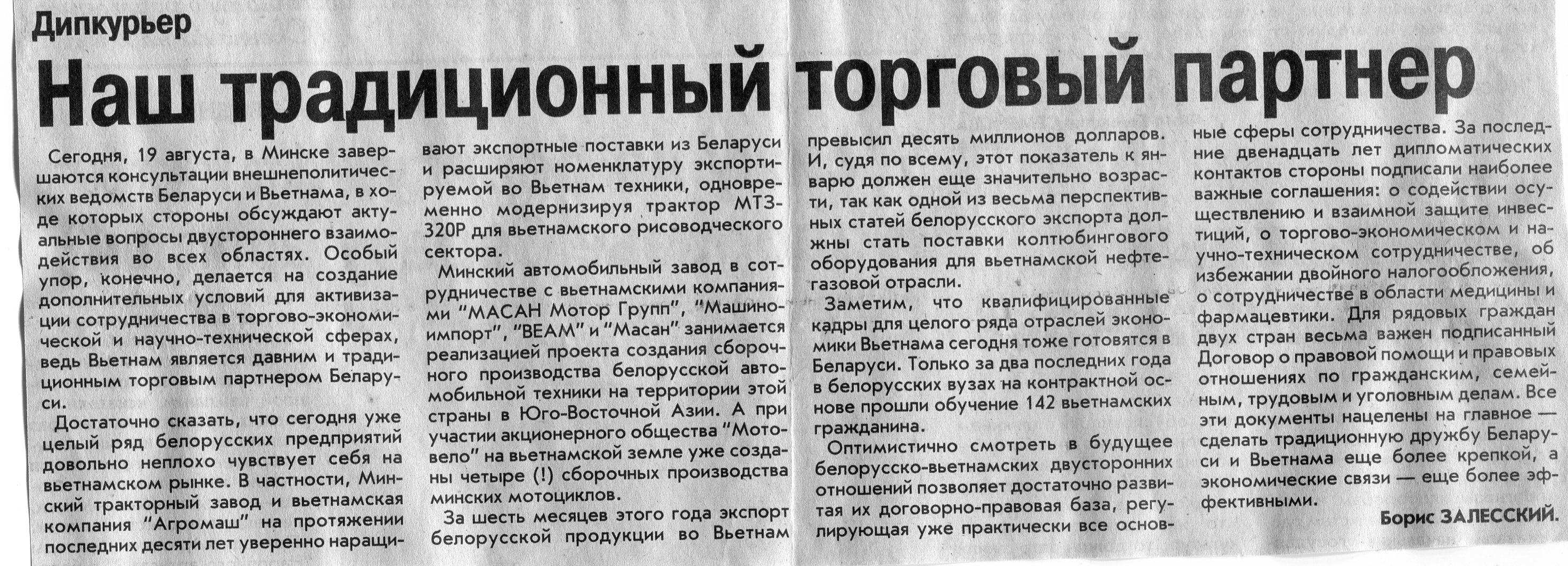 Залесский, Б. Наш традиционный торговый партнер / Б. Залесский // Вечерний Минск. - 2004. - 19 авг.