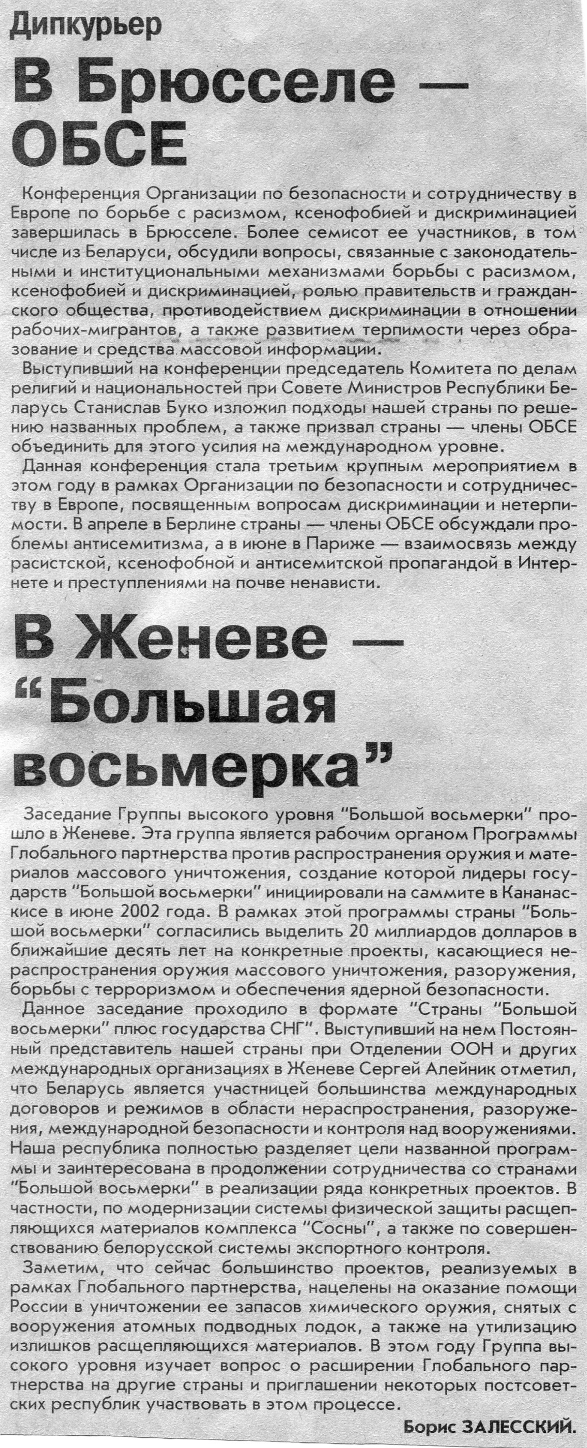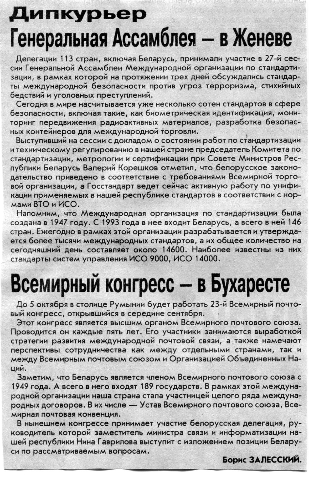 Залесский, Б. Дипкурьер / Б. Залесский // Вечерний Минск. - 2004. - 9 сент.
