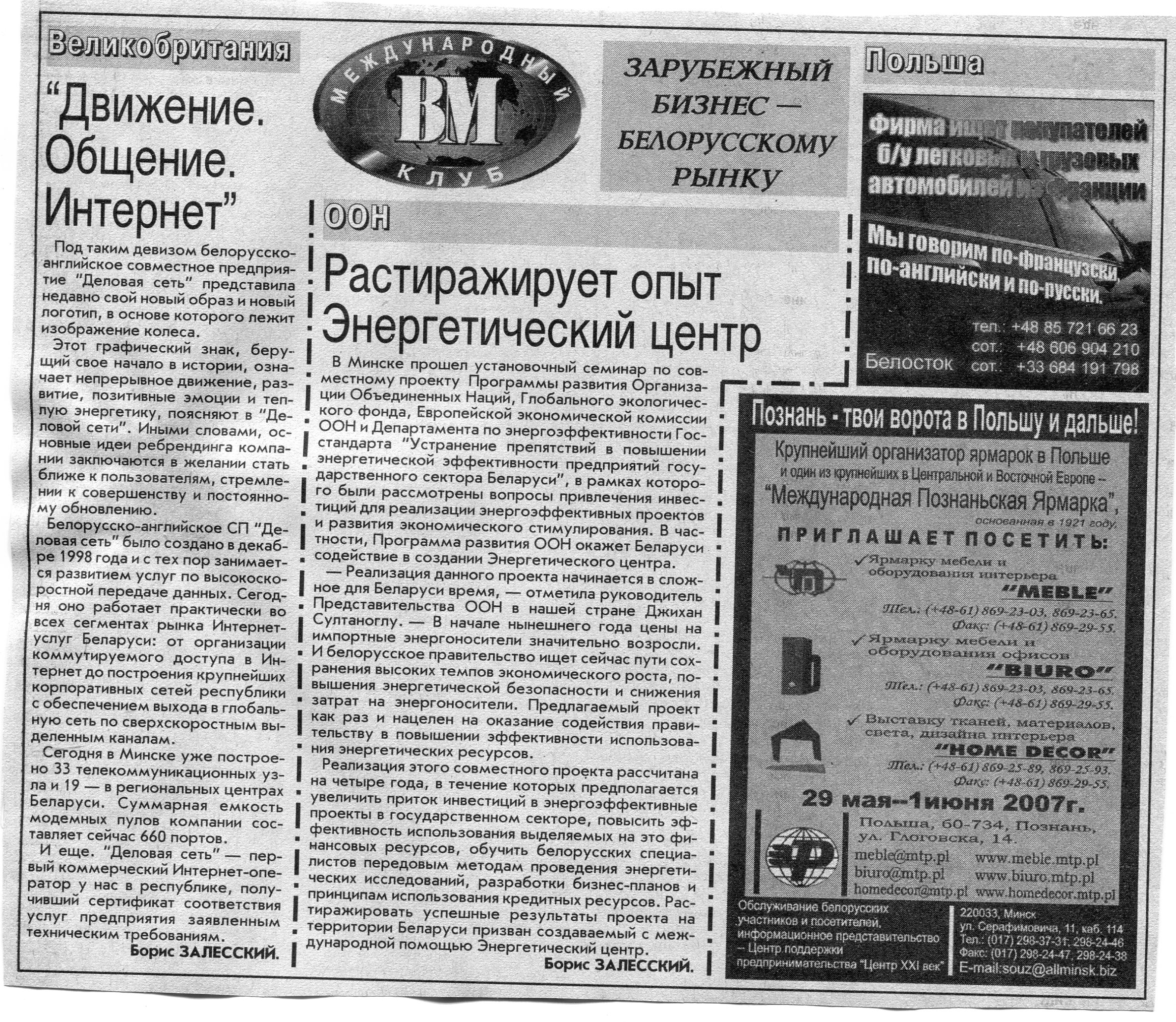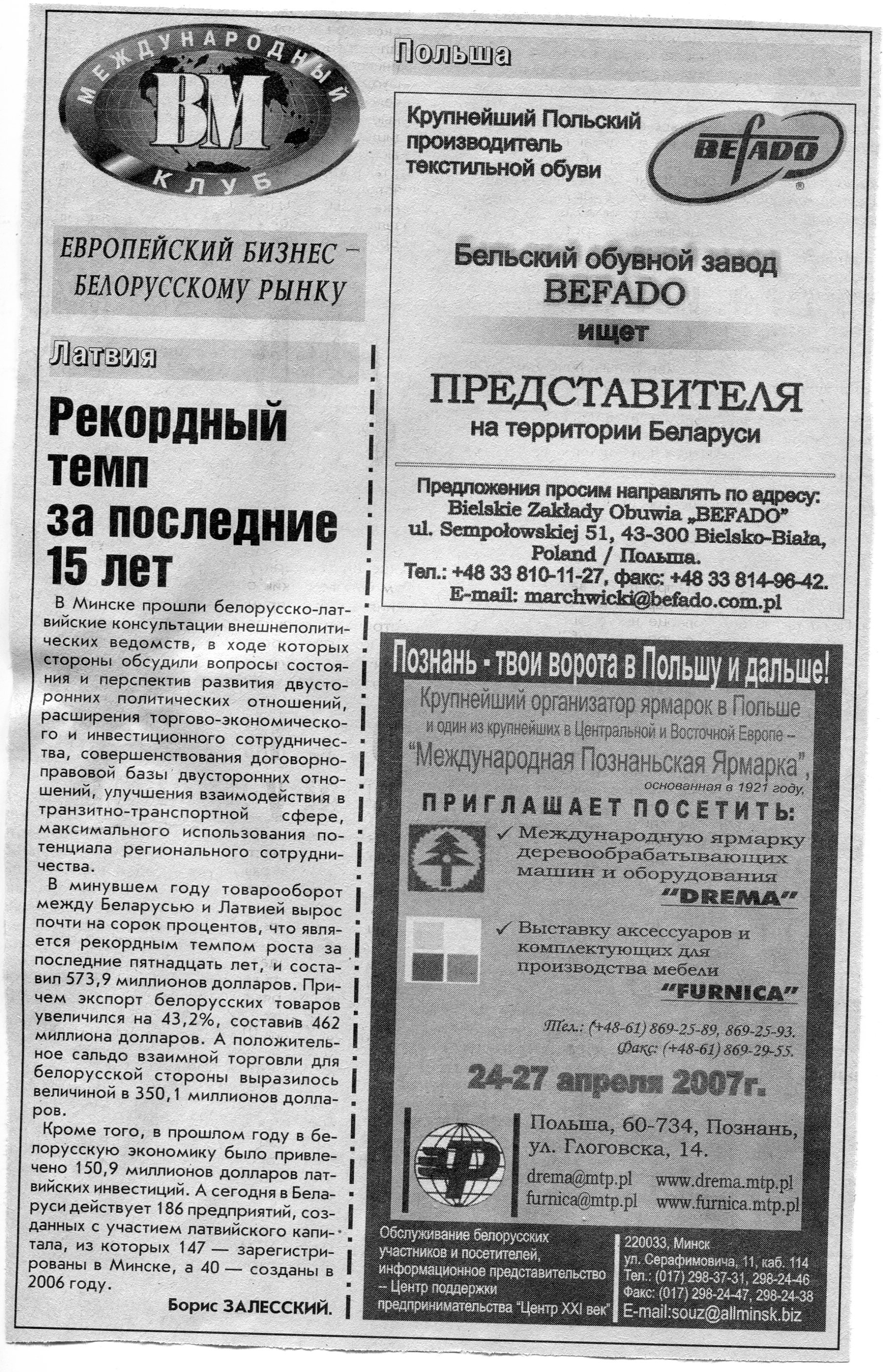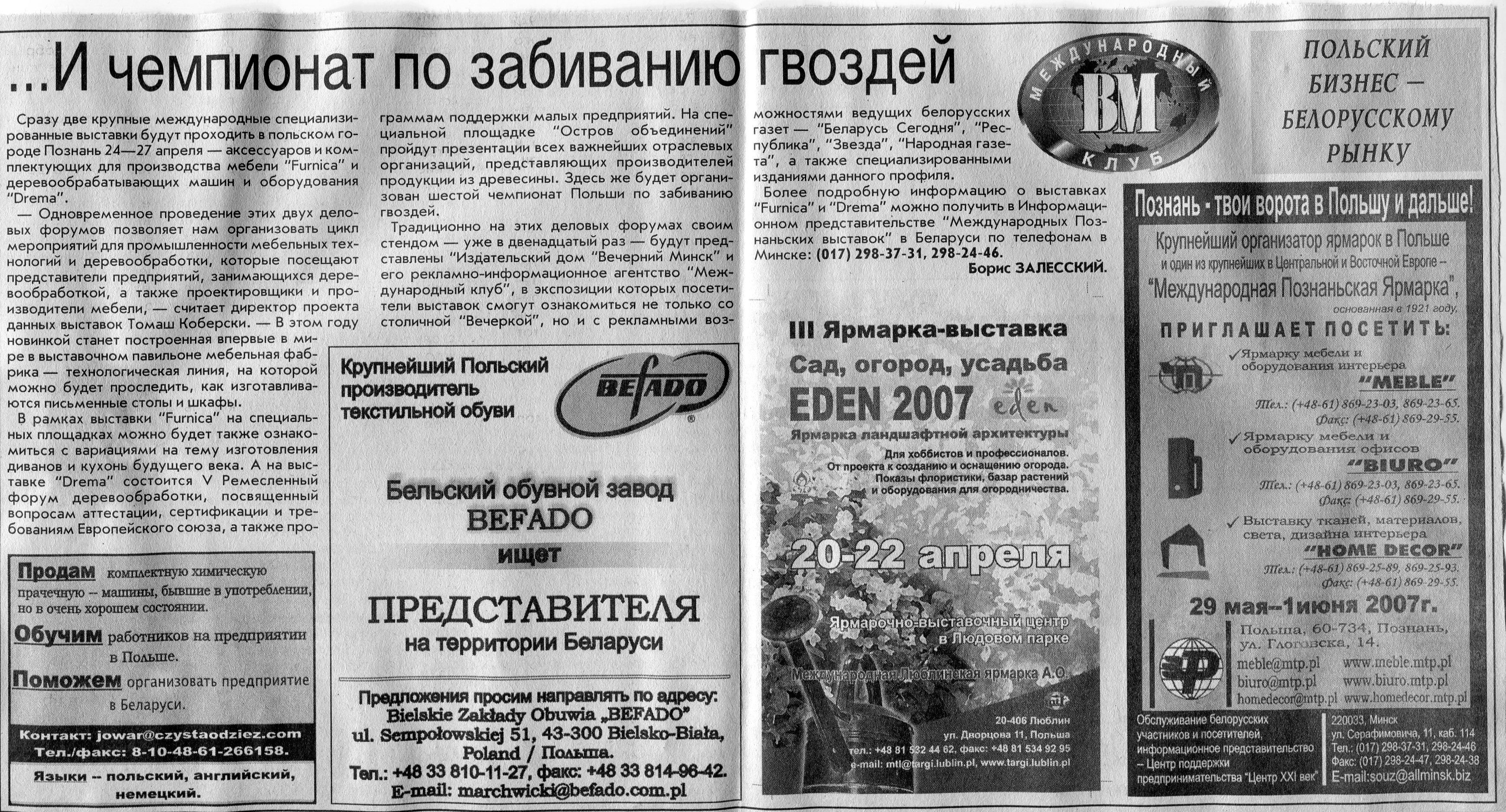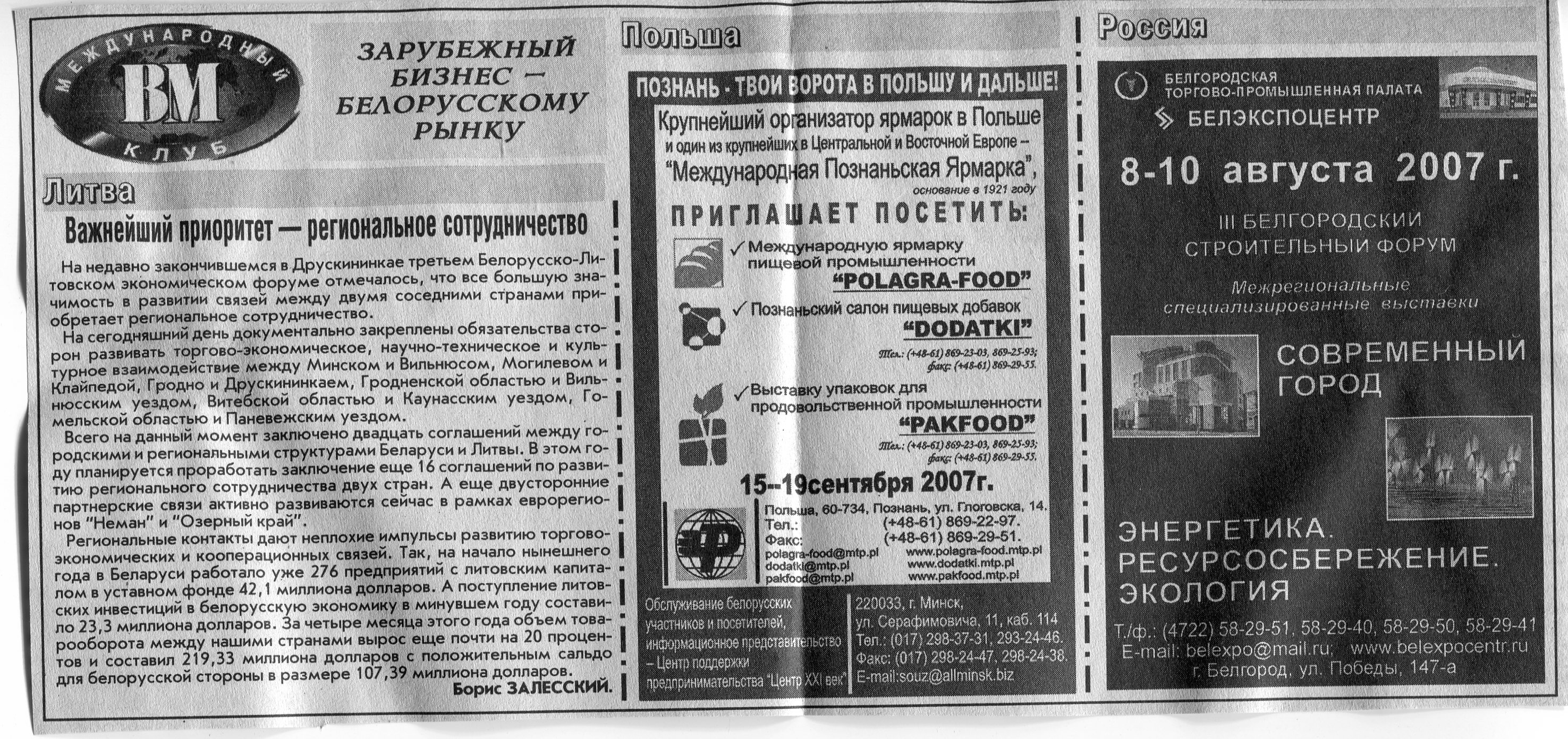 Польский бизнес - белорусскому рынку // Вечерний Минск. - 2007. - 18 мая.
