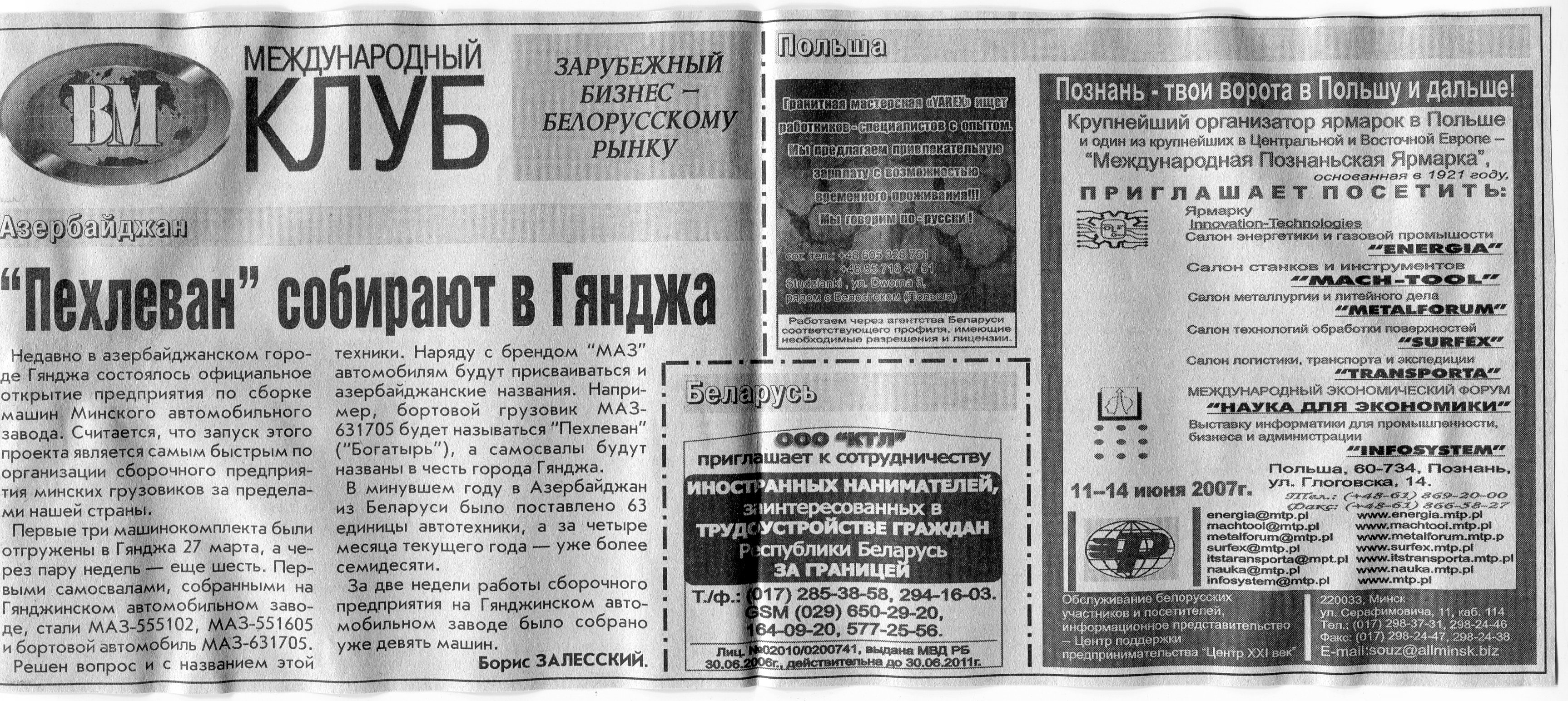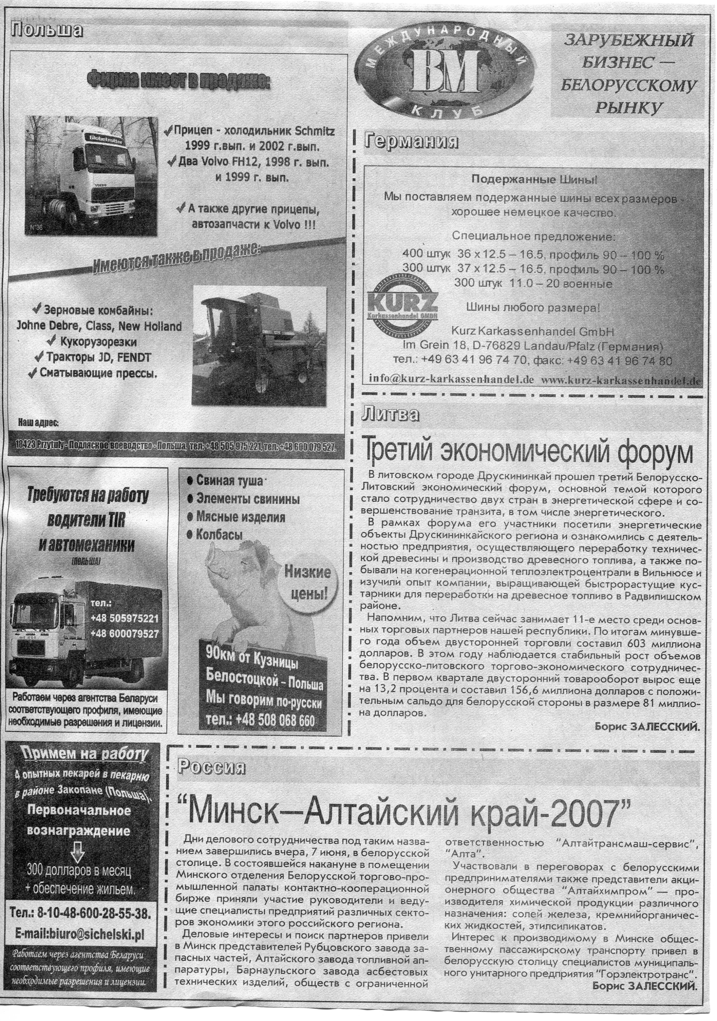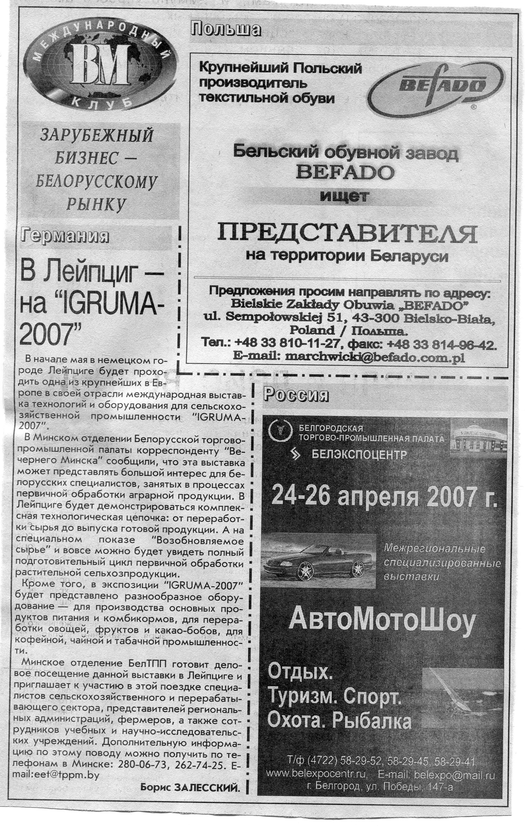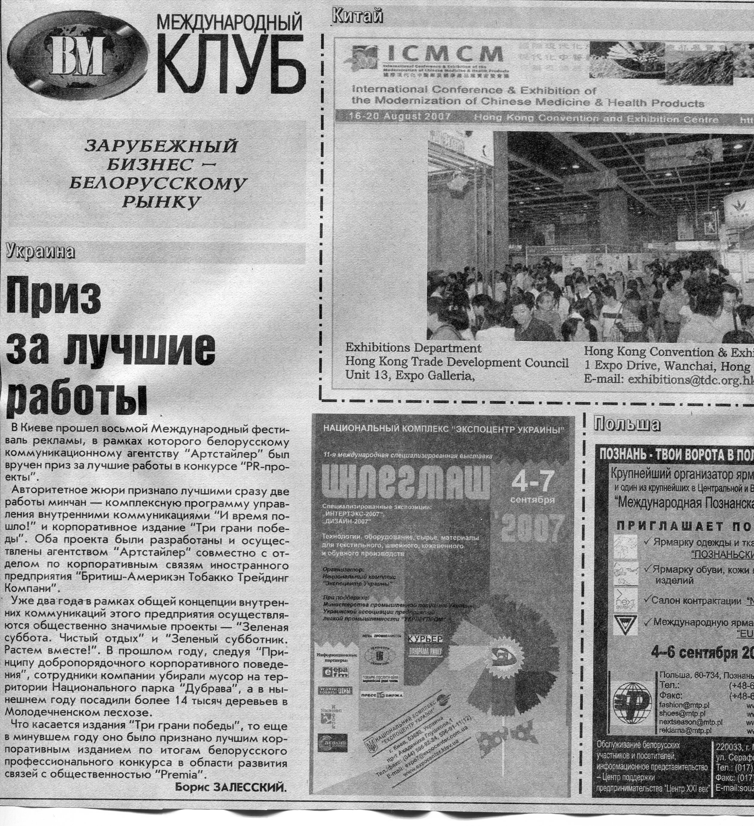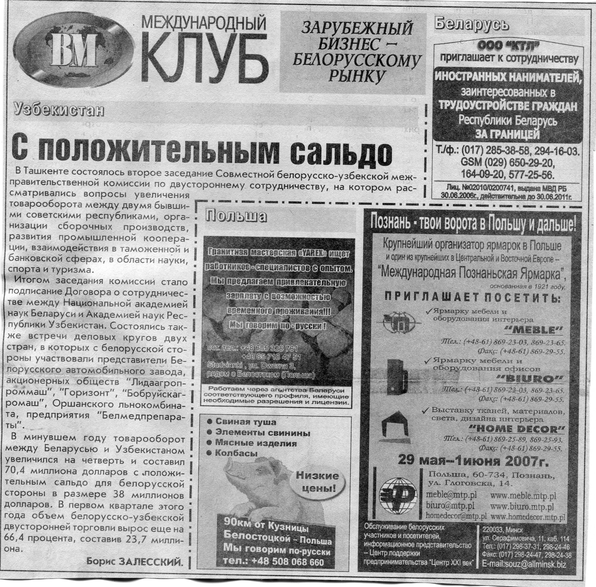 Польский бизнес - белорусскому рынку // Вечерний Минск. - 2007. - 18 мая.