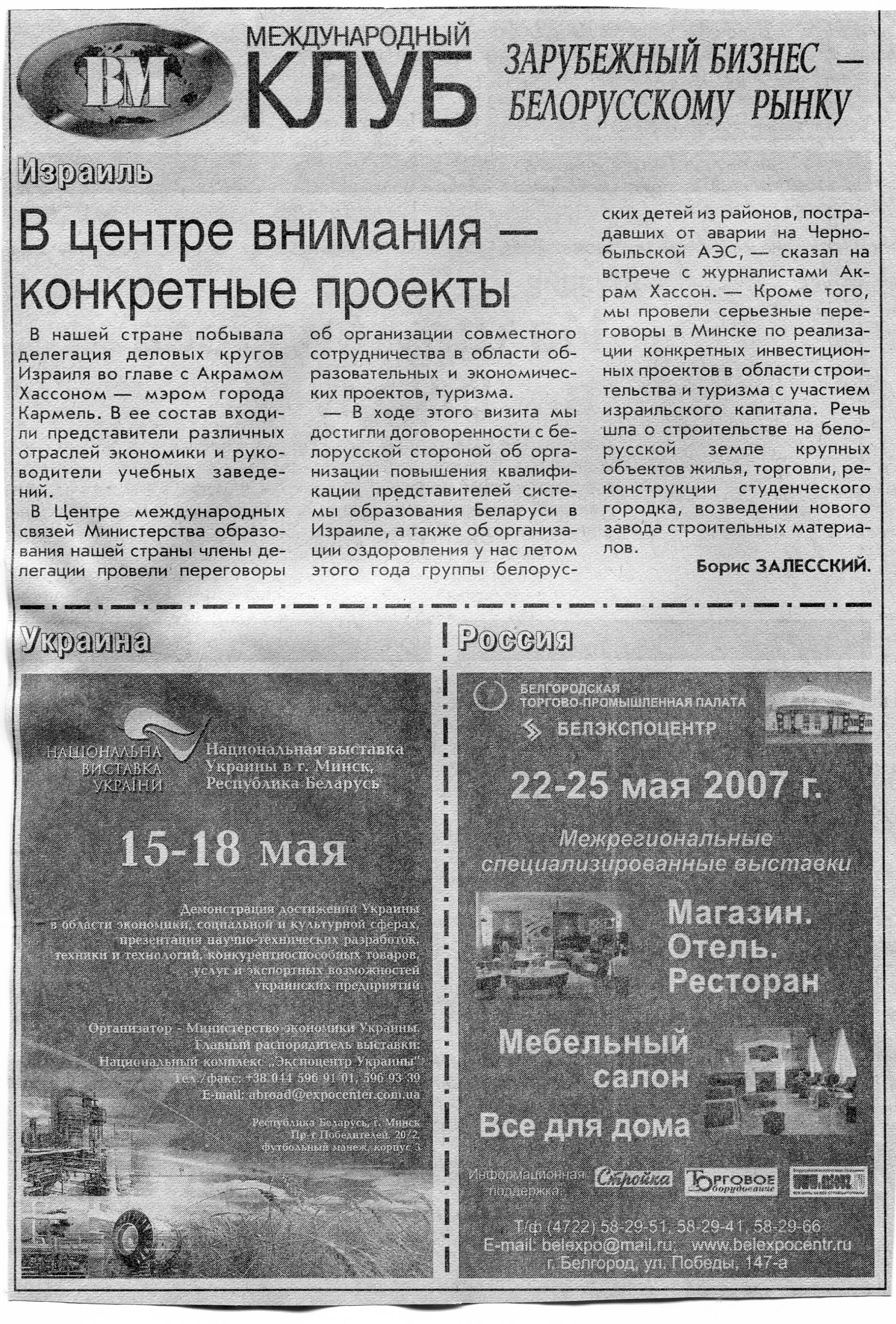 Зарубежный бизнес - белорусскому рынку // Вечерний Минск. - 2007. - 11 мая.